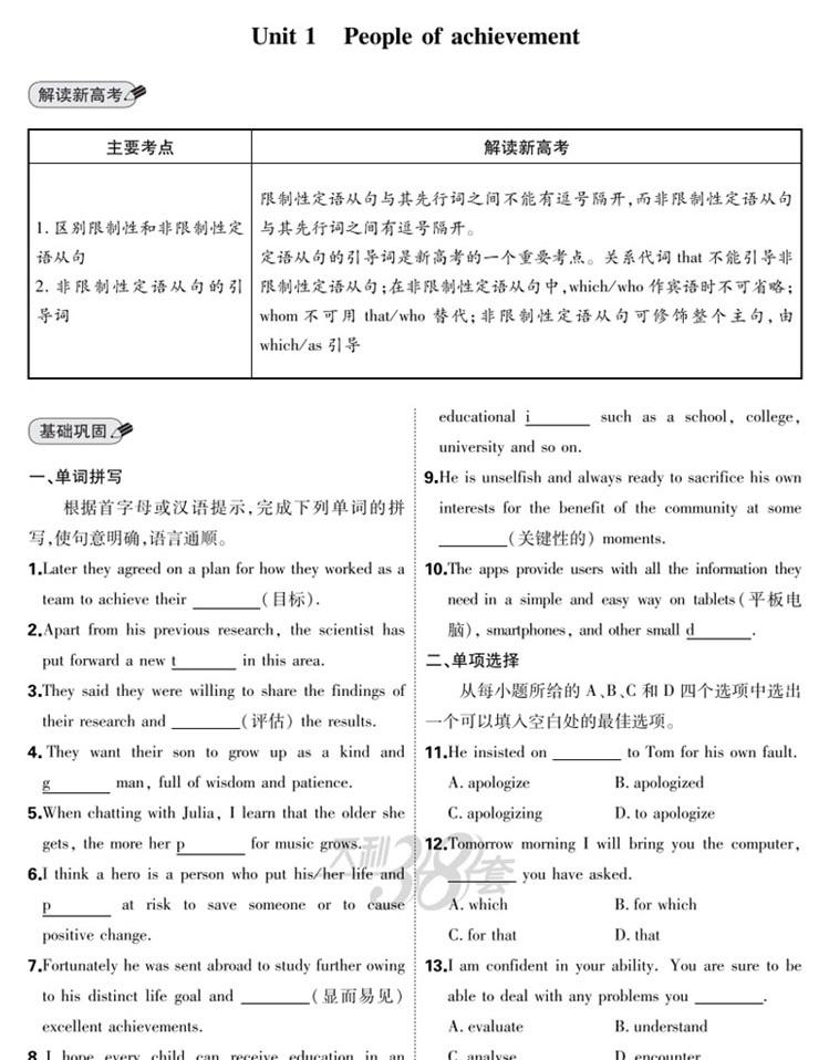 2023版 天利38套对接新高考单元专题测试卷英语选择性必修第一册