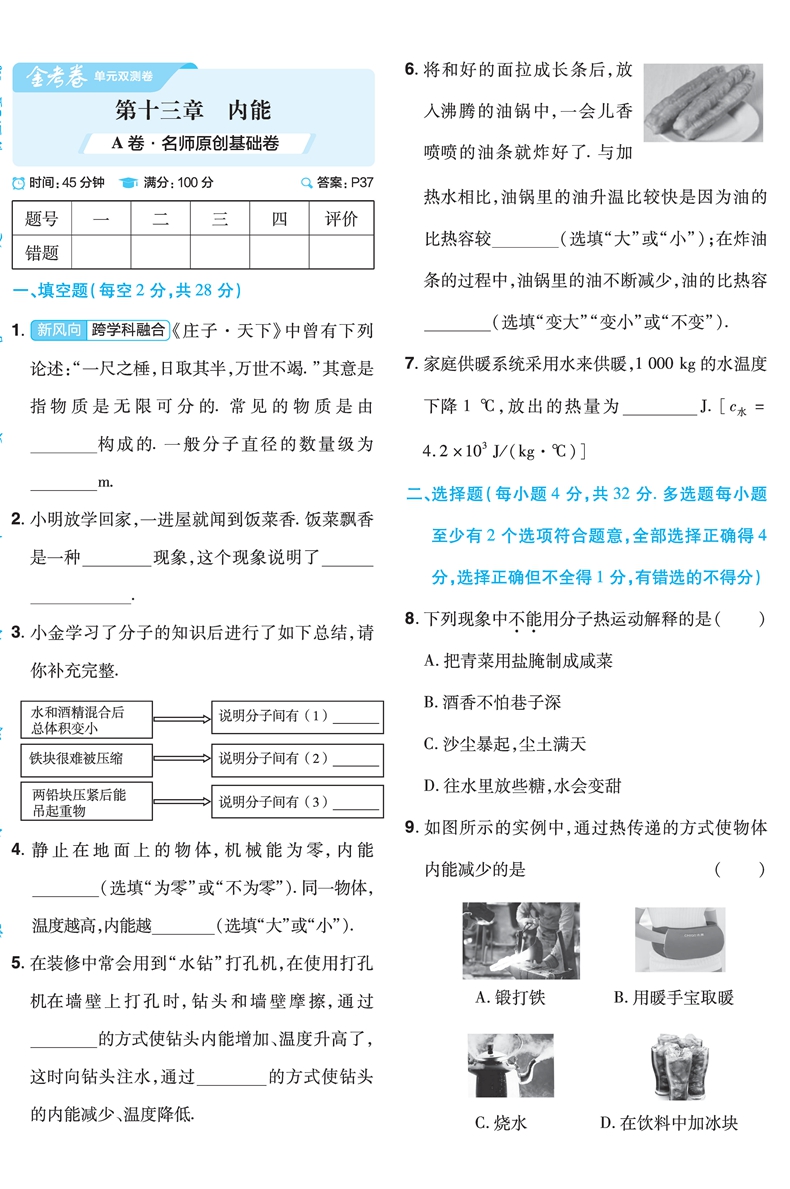 首页> 初中教辅> 九年级> 物理> 2023版金考卷活页题选初中同步单元双测卷九年级全一册物理试卷人教版RJ