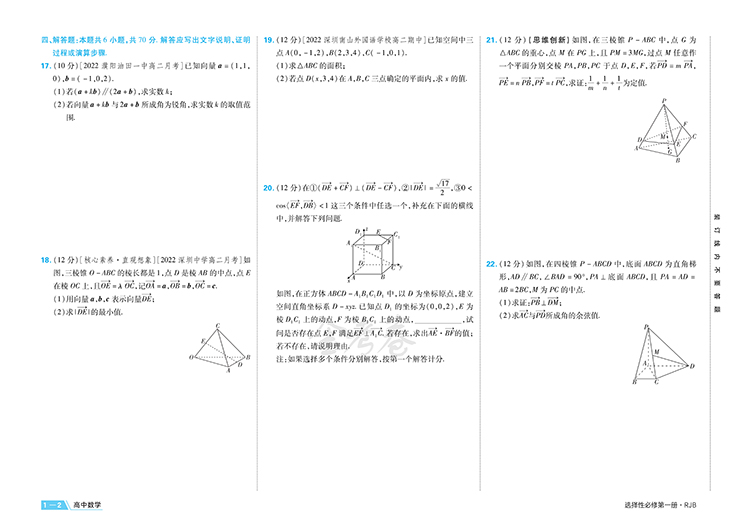 2023金考卷活页题选单元双测卷高中数学选择性必修册人教B版