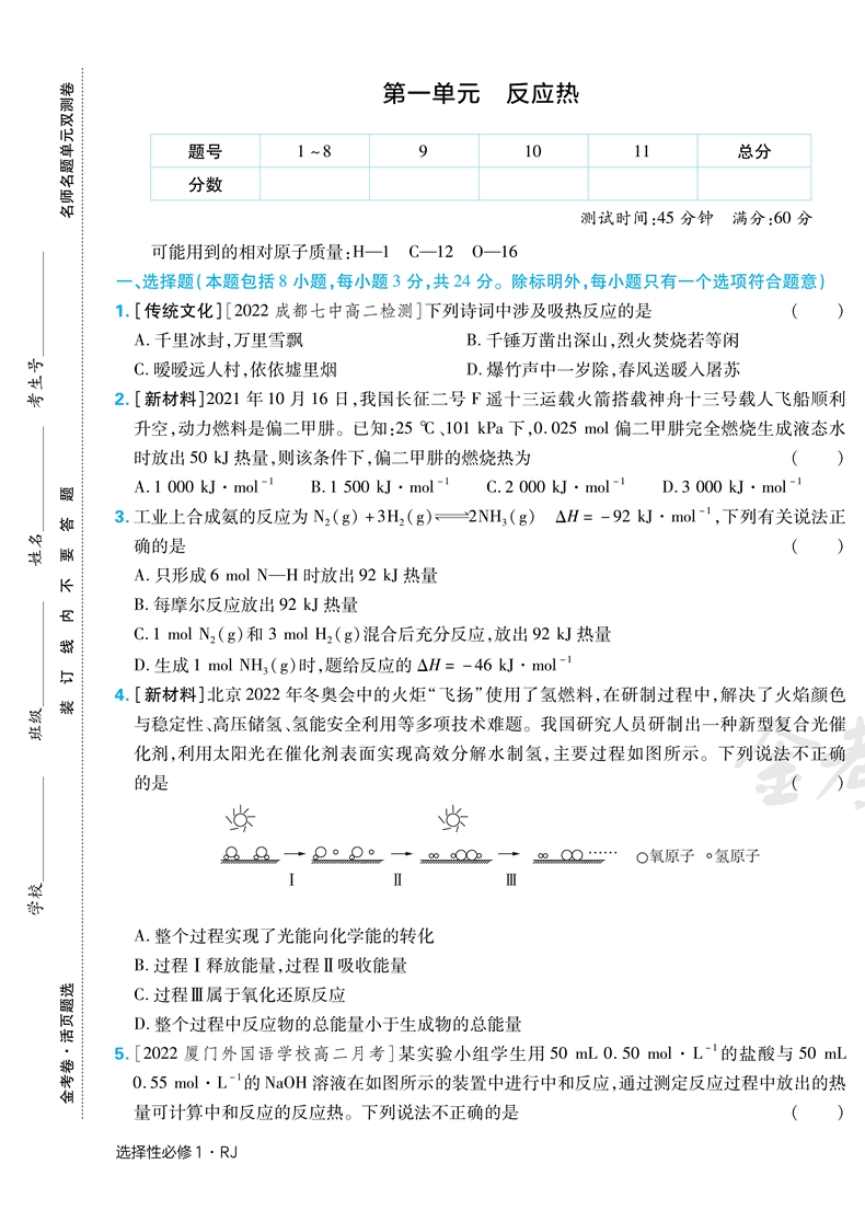 2023版金考卷活页题选名师名题单元双测卷化学选择性必修一人教版