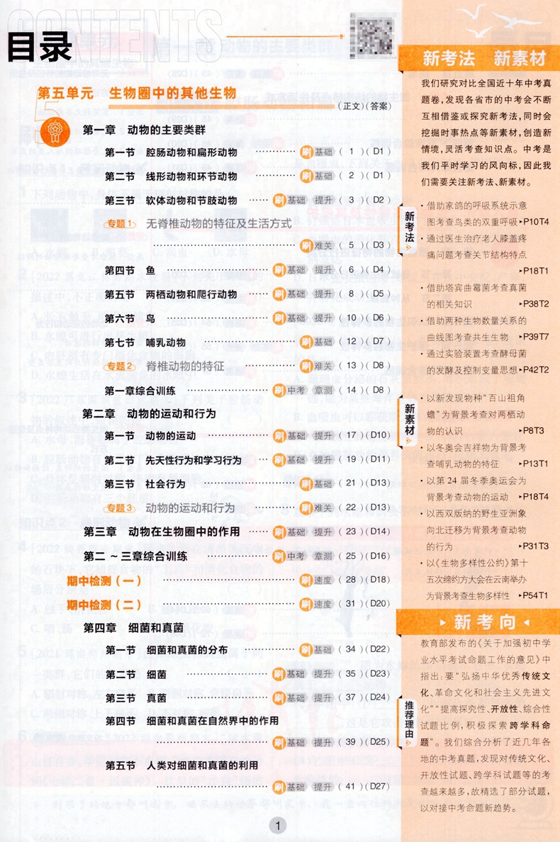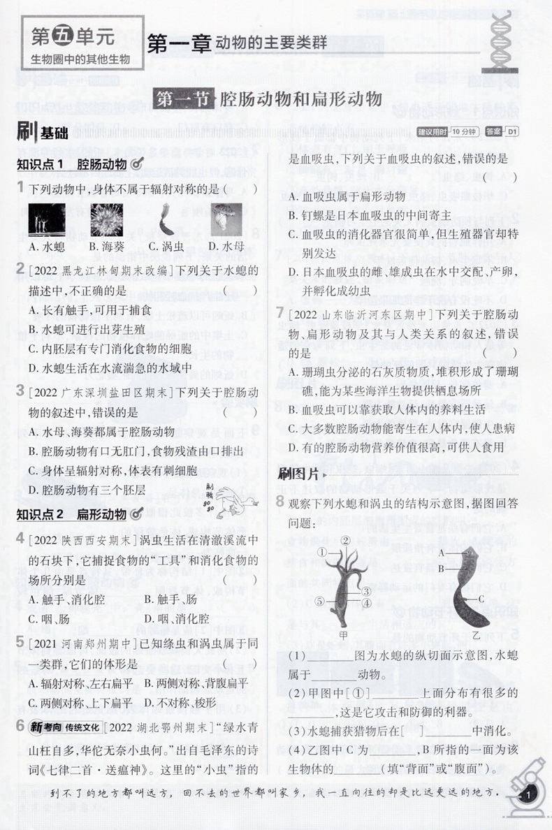 2023版初中必刷题八年级上册生物人教版RJ