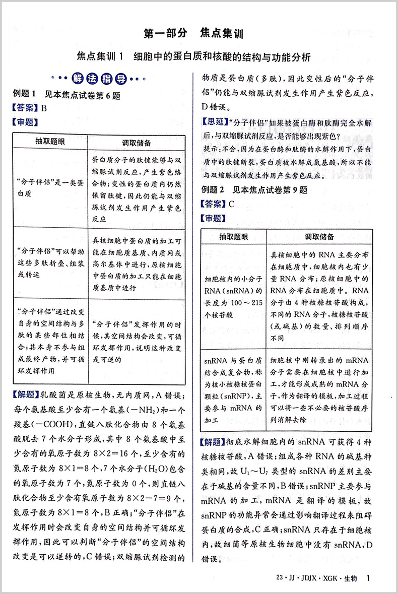 2023版金卷 焦点集训 生物