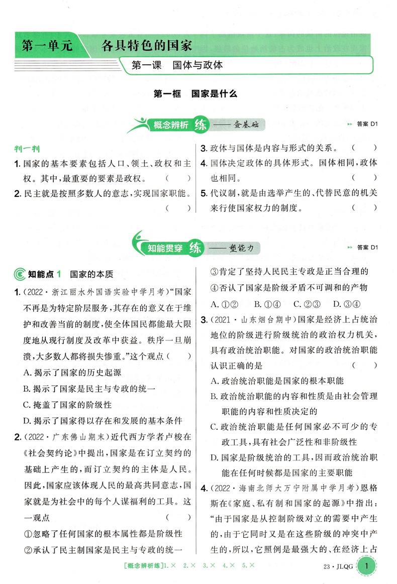 2023版 金练高中同步训练政治人教版选择性必修1当代国际政治与经济