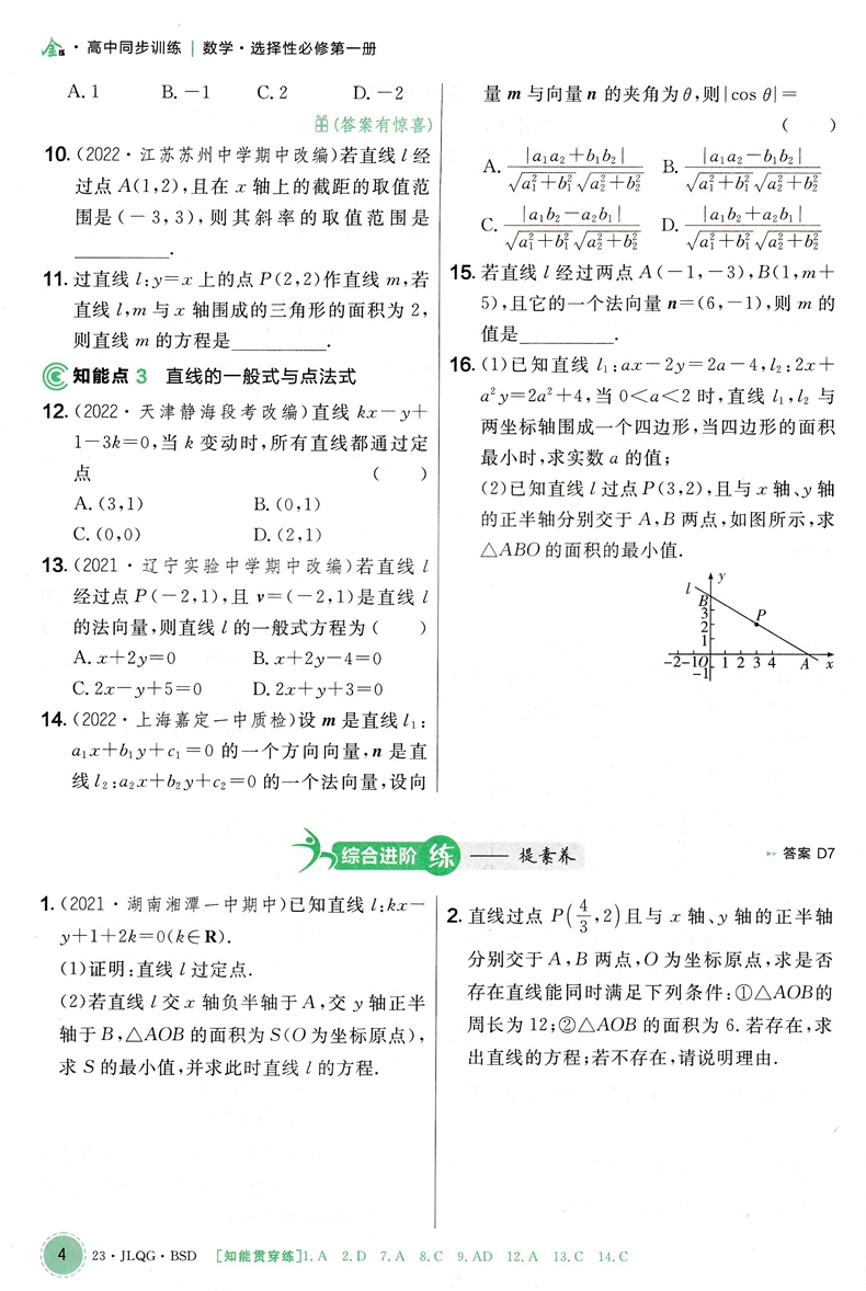 2023版 金练高中同步训练数学人教版选择性必修第一册