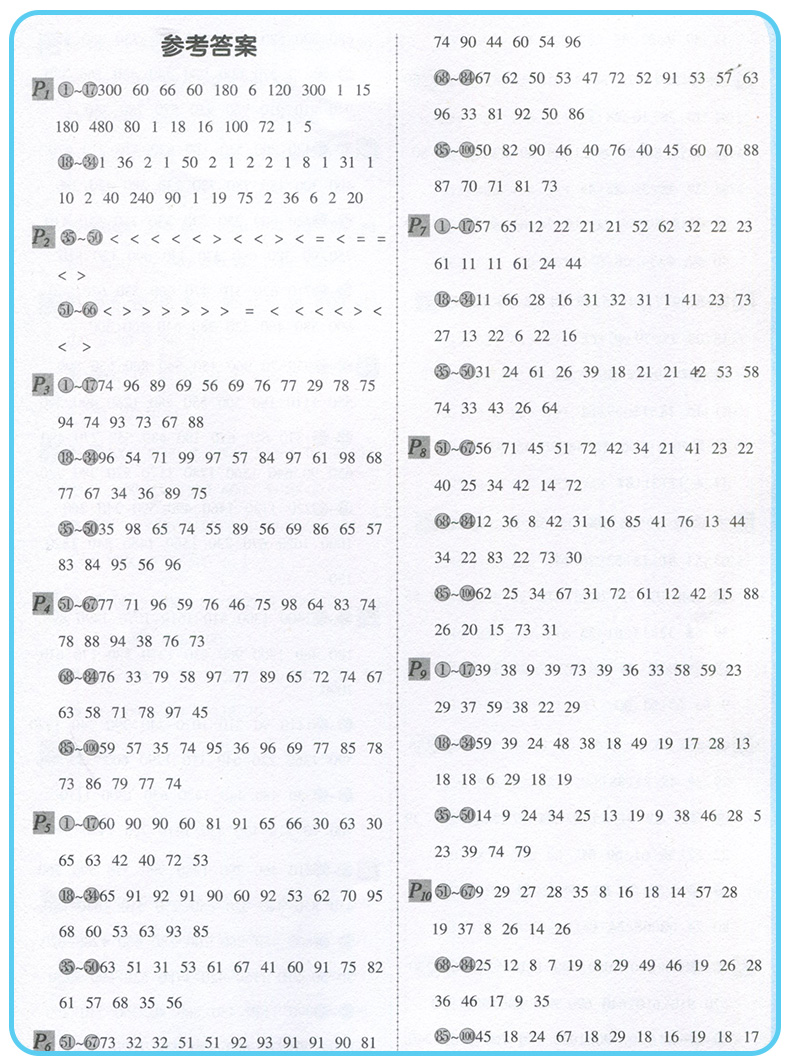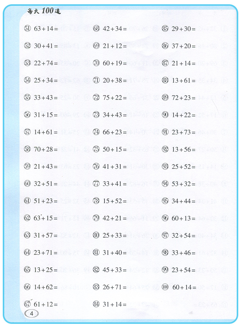 每天100道口算题卡 三年级上册