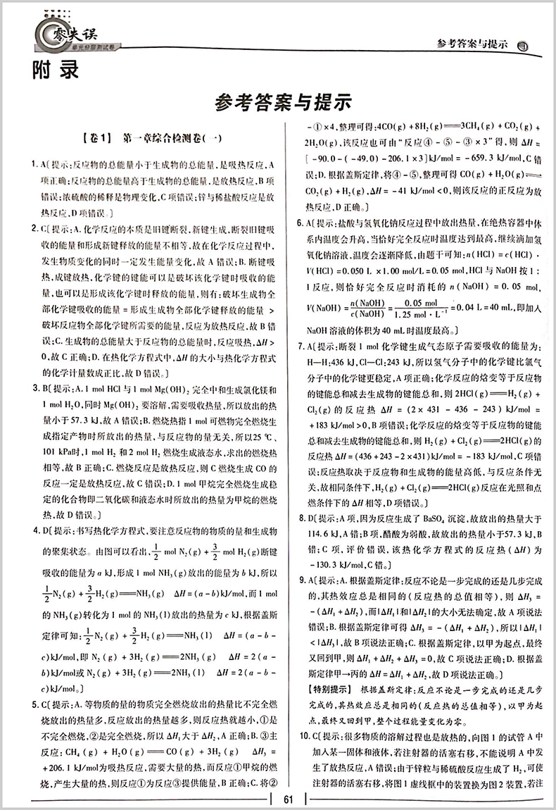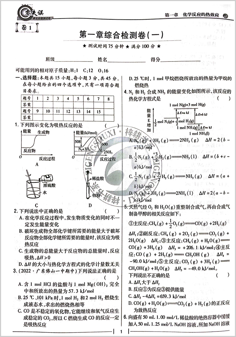 零失误单元分层测试卷高中化学选择性必修1册人教版