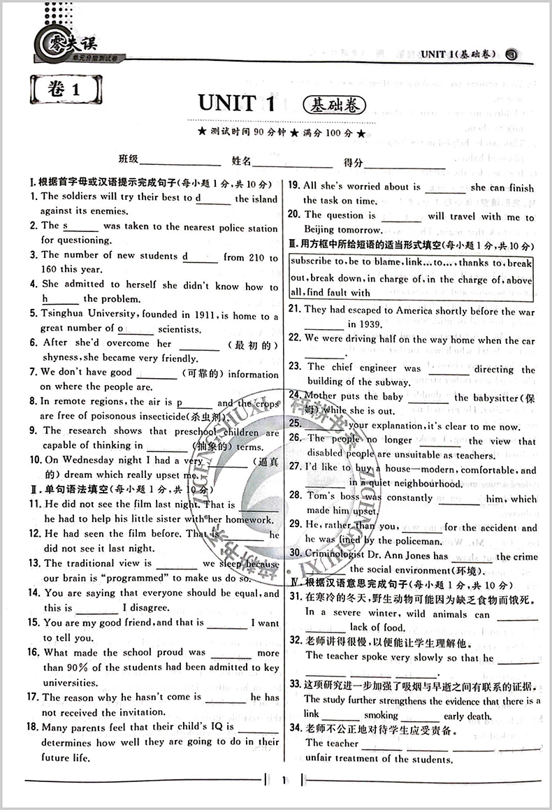 首页> 高中教辅> 高二年级> 英语> 零失误单元分层测试卷高中二年级上英语选择性必修2