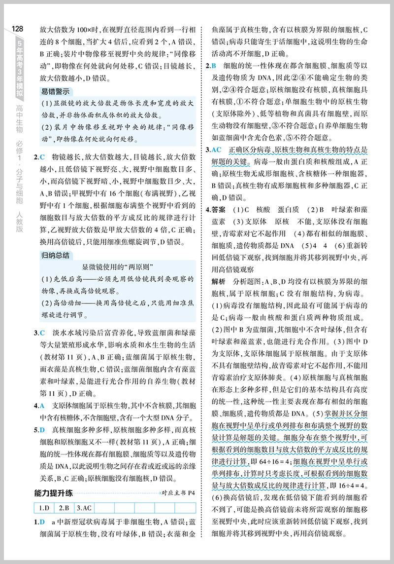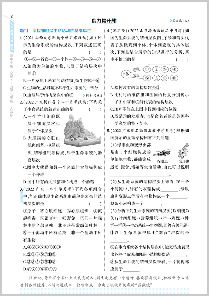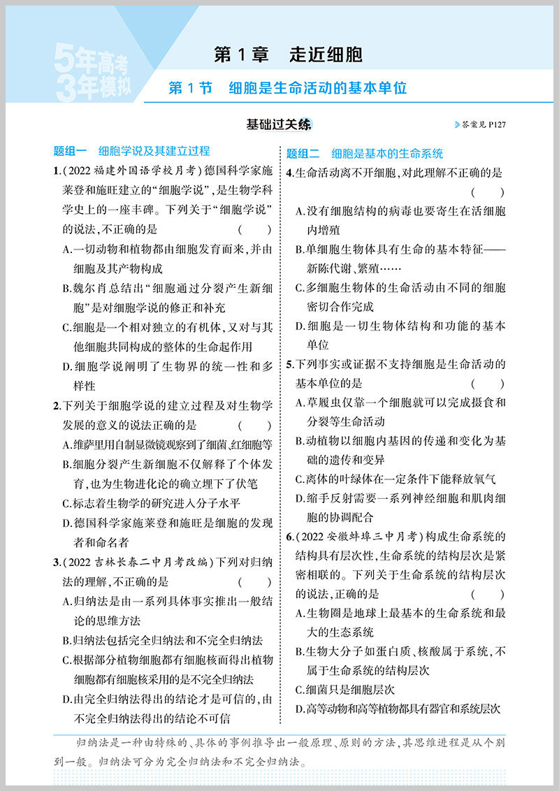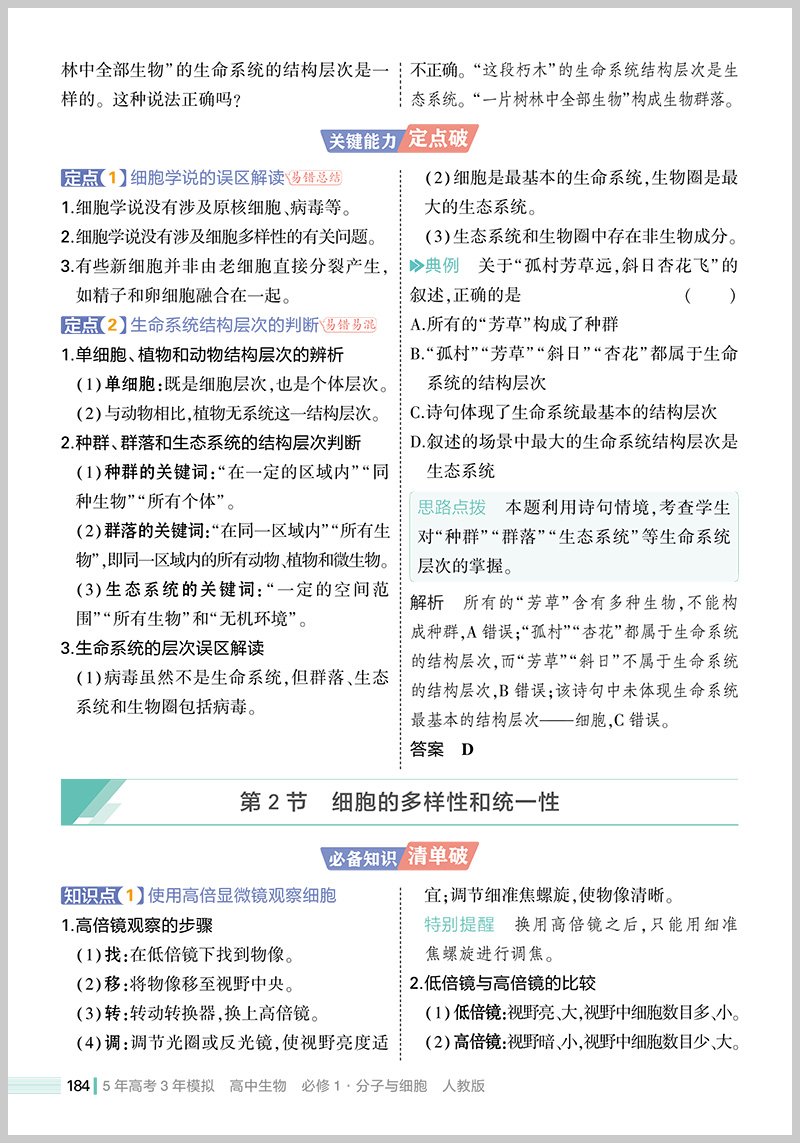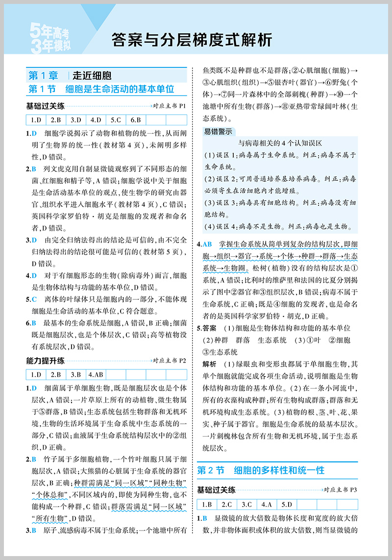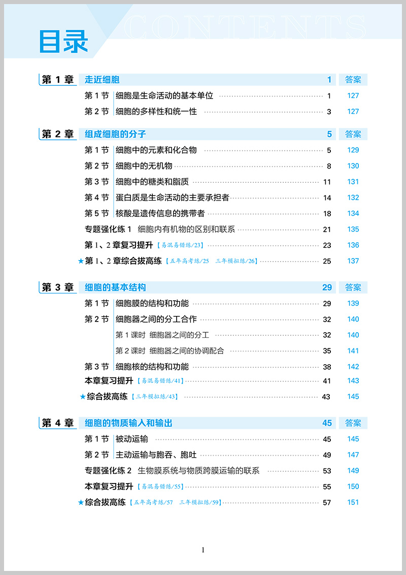 2023版五年高考三年模拟生物必修册分子与细胞人教版RJ