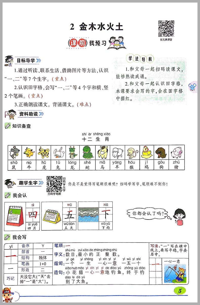 2022秋 东北专版 状元大课堂全彩版一年级语文上册