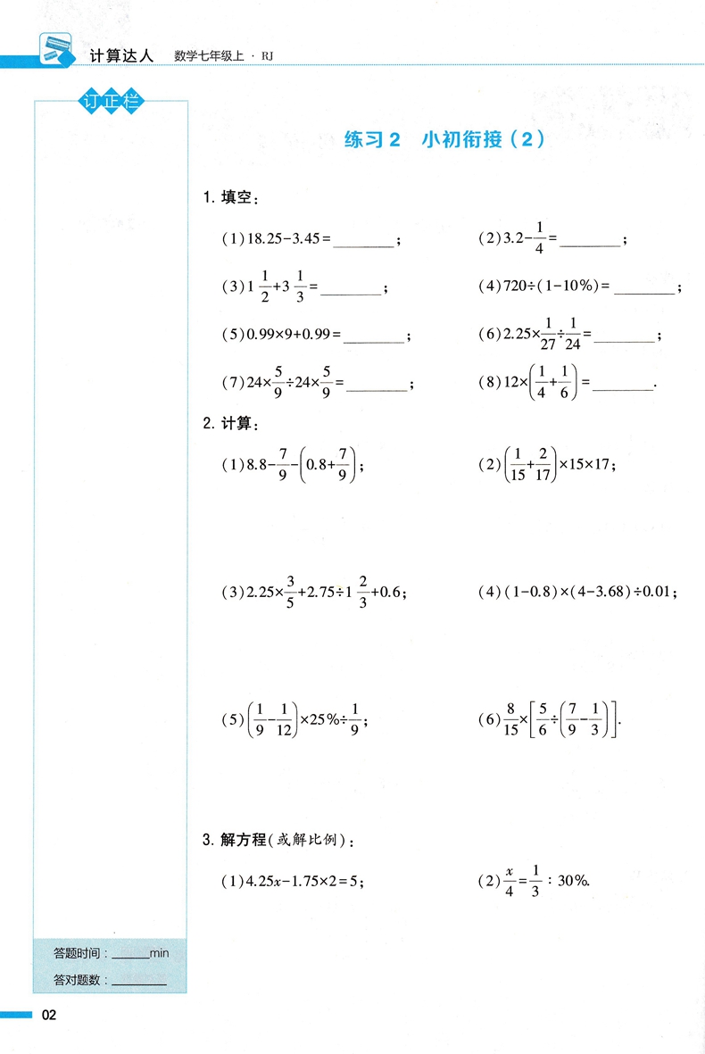 首页> 初中教辅> 七年级> 数学> 计算达人数学七年级上册人教版