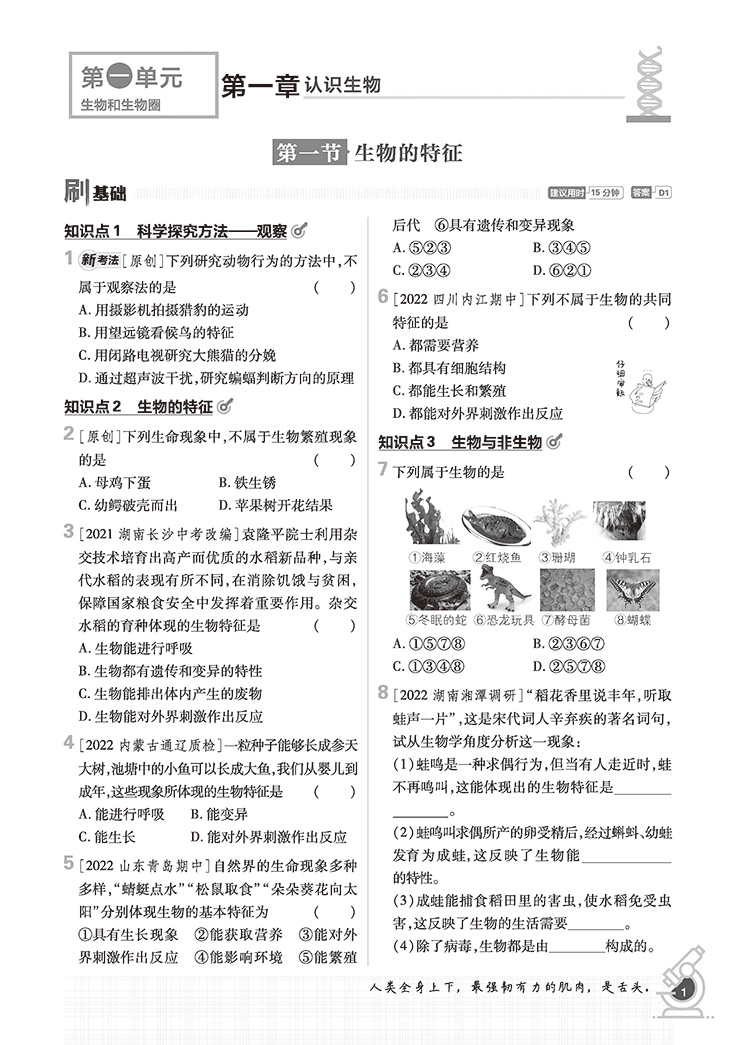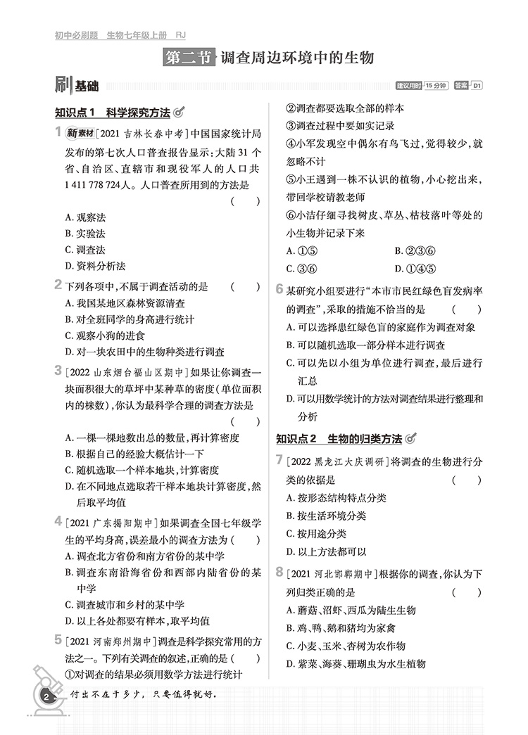首页> 初中教辅> 七年级> 生物> 2023版 初中必刷题七年级生物上册