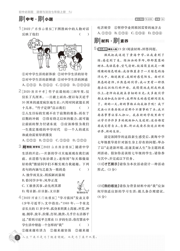 2023版 初中必刷题七年级政治上册