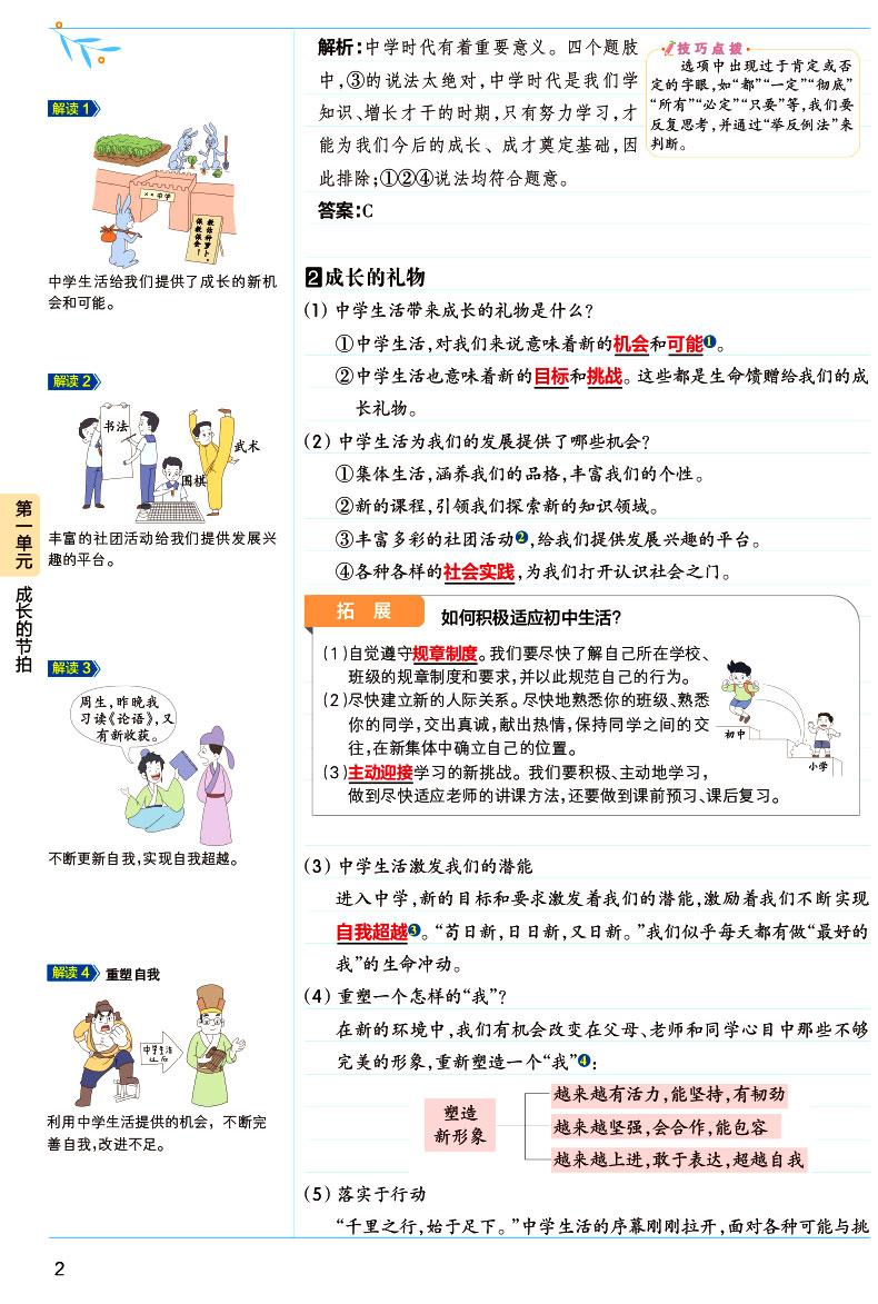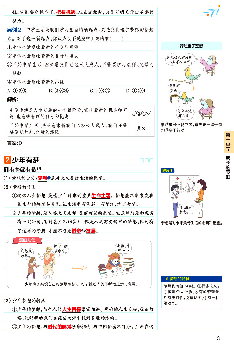 2023绿卡图书 学霸同步笔记七年级政治统编版