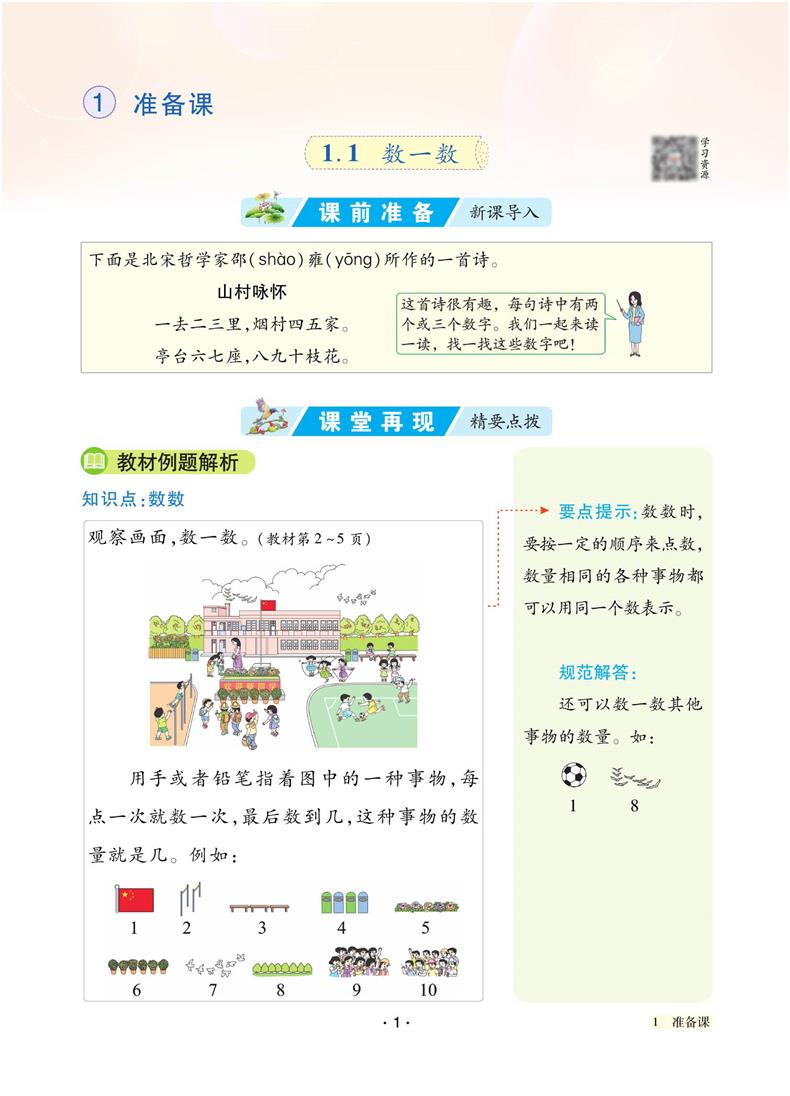 2022秋 教学大典 英才必记再现课堂一年级数学上册