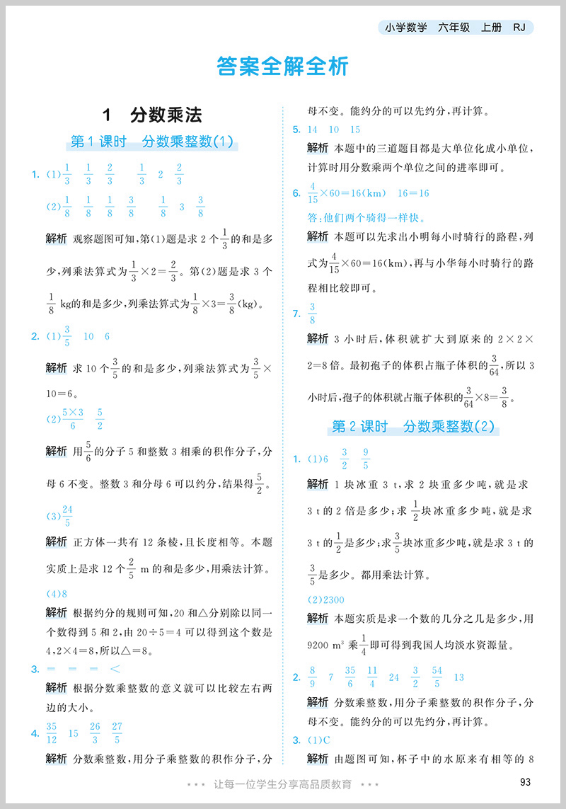 53天天练 小学数学 六年级上册 RJ 人教版 2022秋季