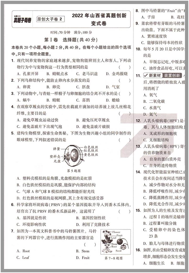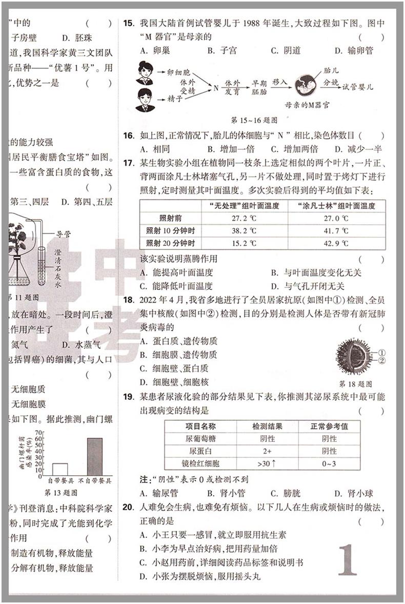 万唯中考 真题子母卷 生物