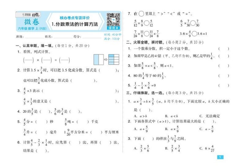 首页> 小学教辅> 六年级> 数学> 2022秋 荣德基 好卷六年级数学上册人教版