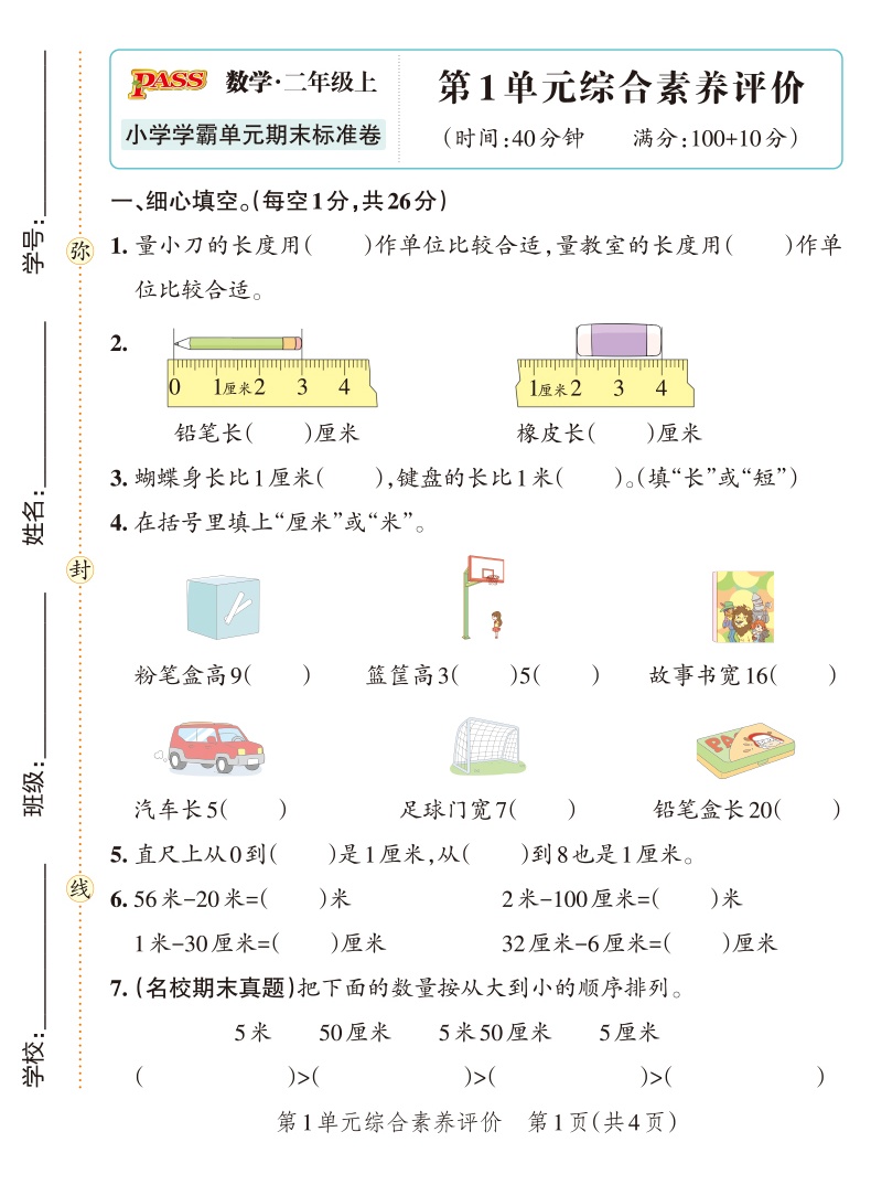2022秋 绿卡图书 小学学霸单元期末标准卷数学二年级上