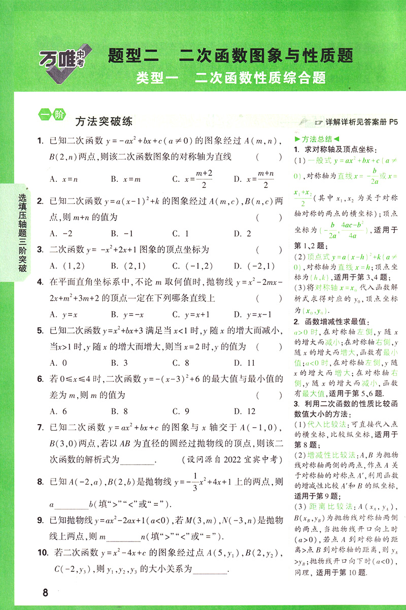 2023版万唯中考 初中数学 函数压轴题