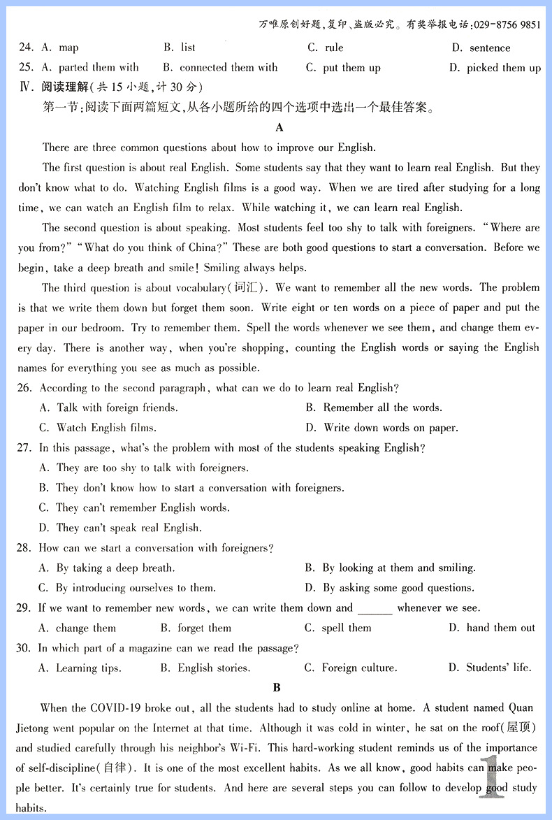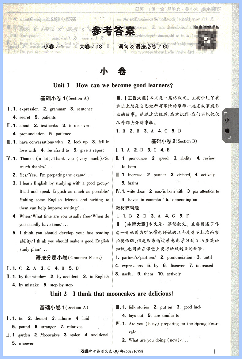 2023版 万唯中考 大小卷九年级全一册 英语