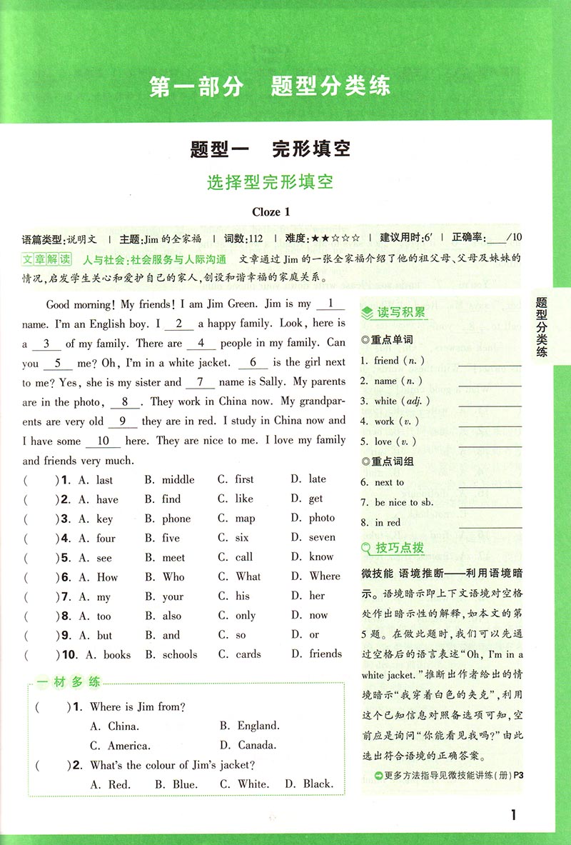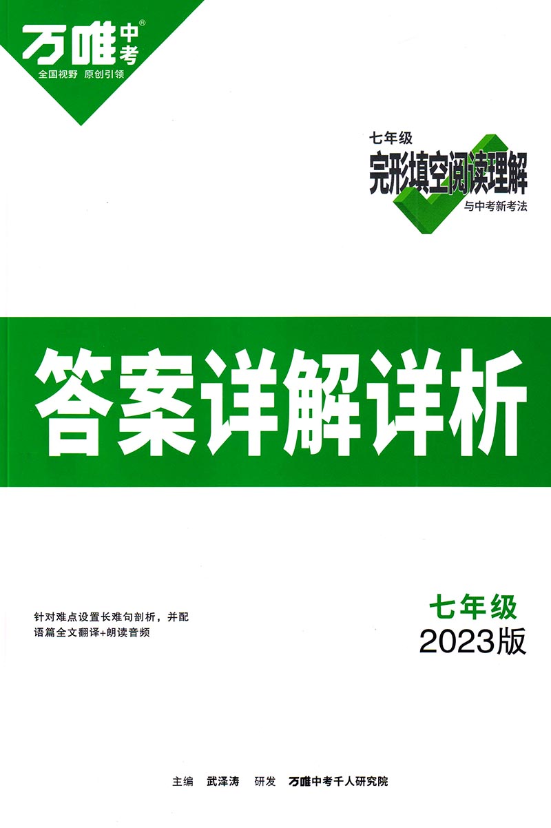 2023版万唯中考 初中七年级英语 完形填空阅读理解(与中考新考法)