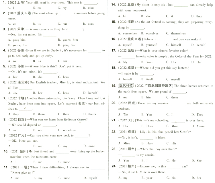 2023版 万唯中考 中考精选1000题 真题分类英语