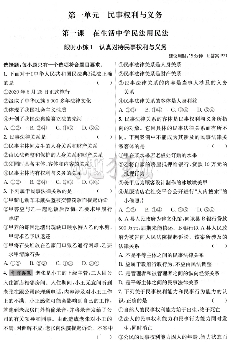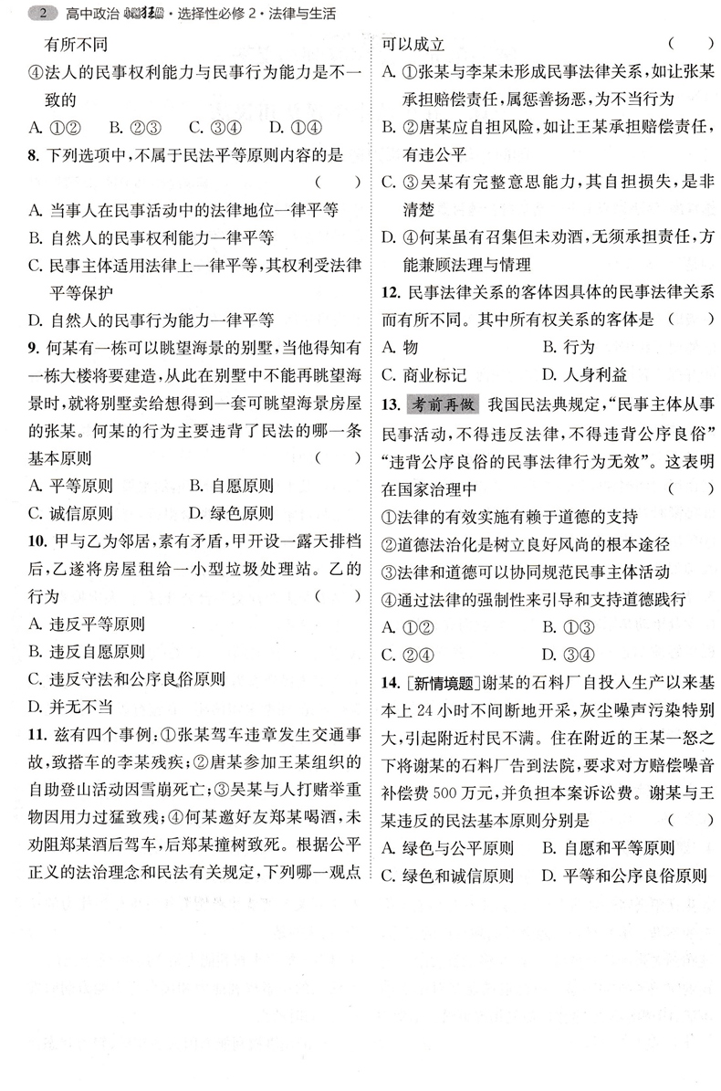 2023版 小题狂做 高中政治 选择性必修二 法律与生活