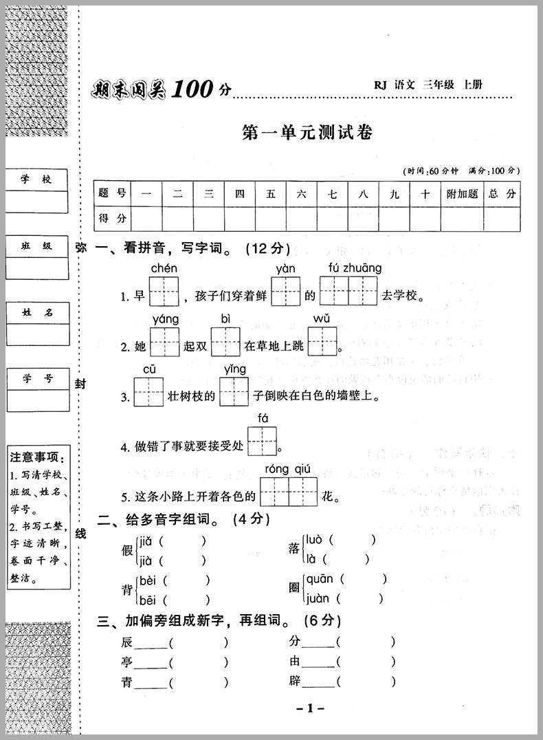 首页> 小学教辅> 三年级> 语文> 2022秋 期末闯关100分语文三年级上册