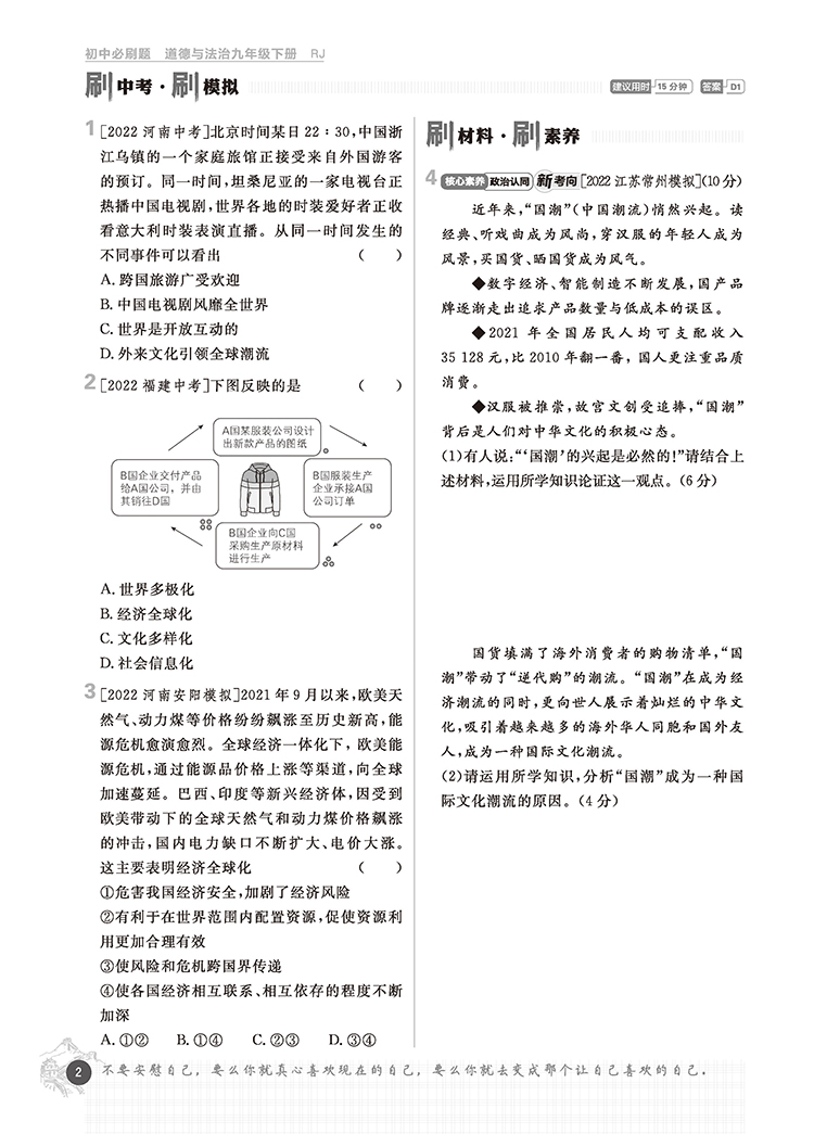 首页> 初中教辅> 九年级> 政治> 2023版 初中必刷题政治九年级下册