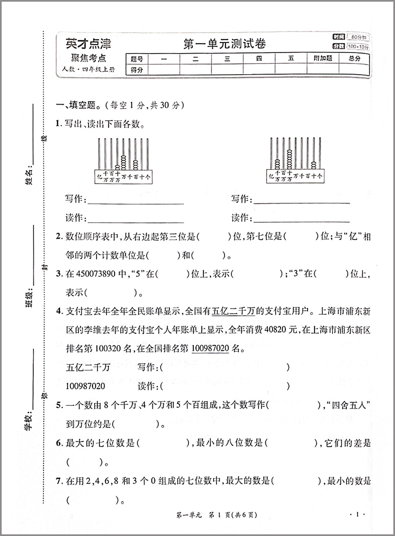 英才点津 聚焦考点 数学 四年级上册 人教版