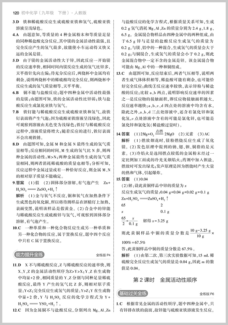 2023版 5年中考3年模拟 初中化学九年级下册