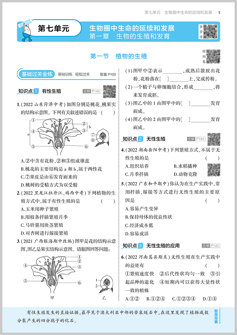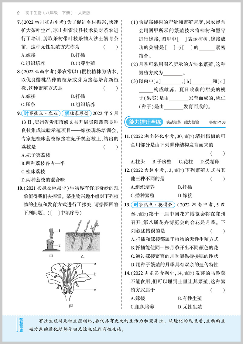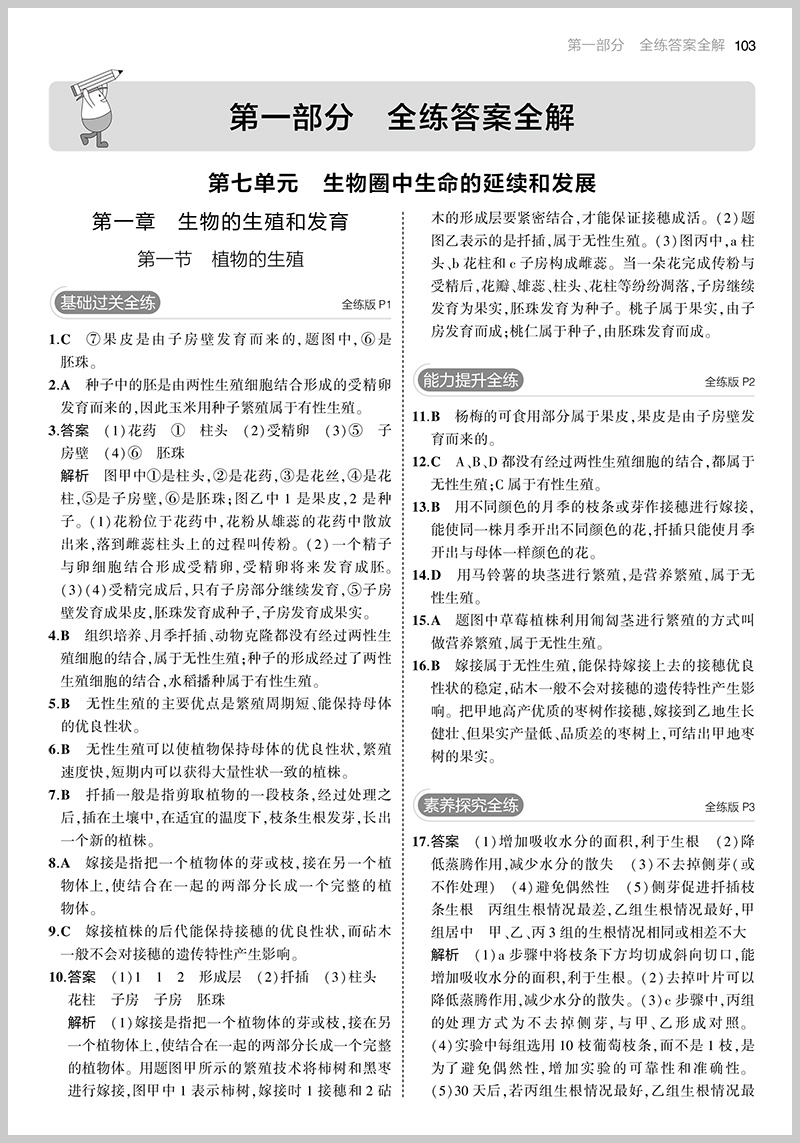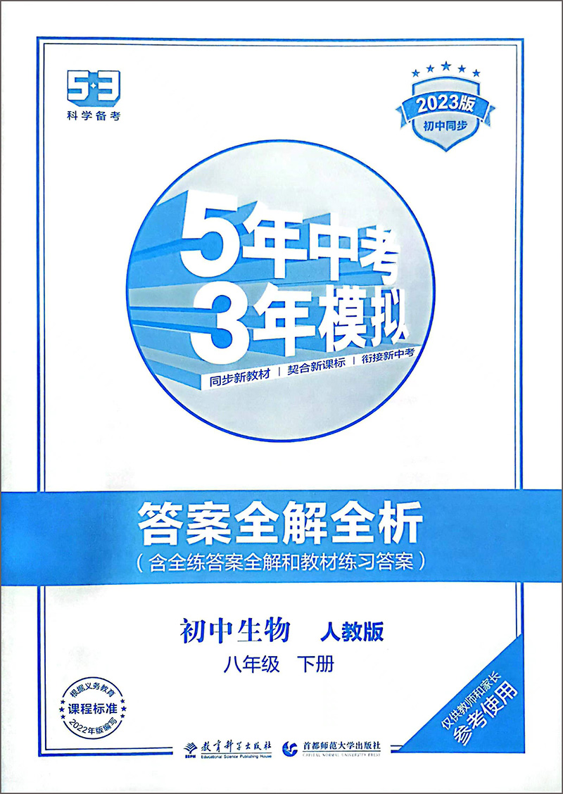 曲一线 初中生物八年级下册 人教版 2023版初中同步5年中考3年模拟