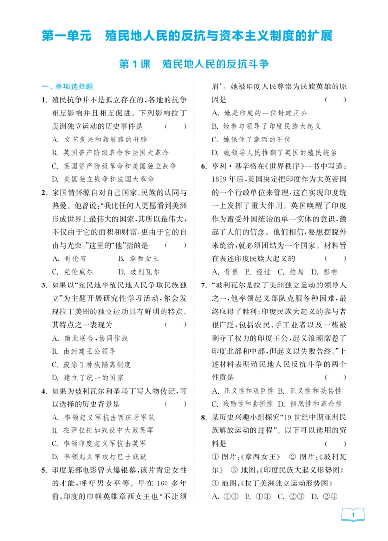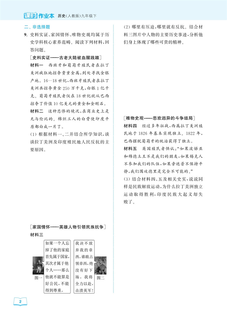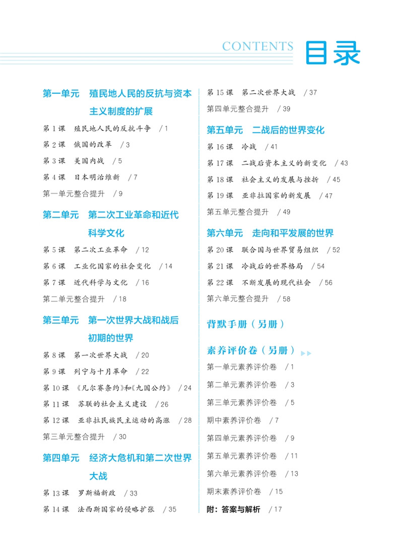 2023春 通成学典 课时作业本九年级历史下册 人教版