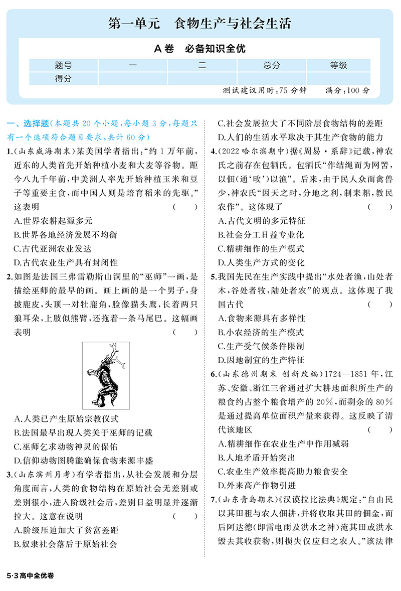 曲一线 2023版 5.3高中全优卷历史选择性必修2、3册 人教版