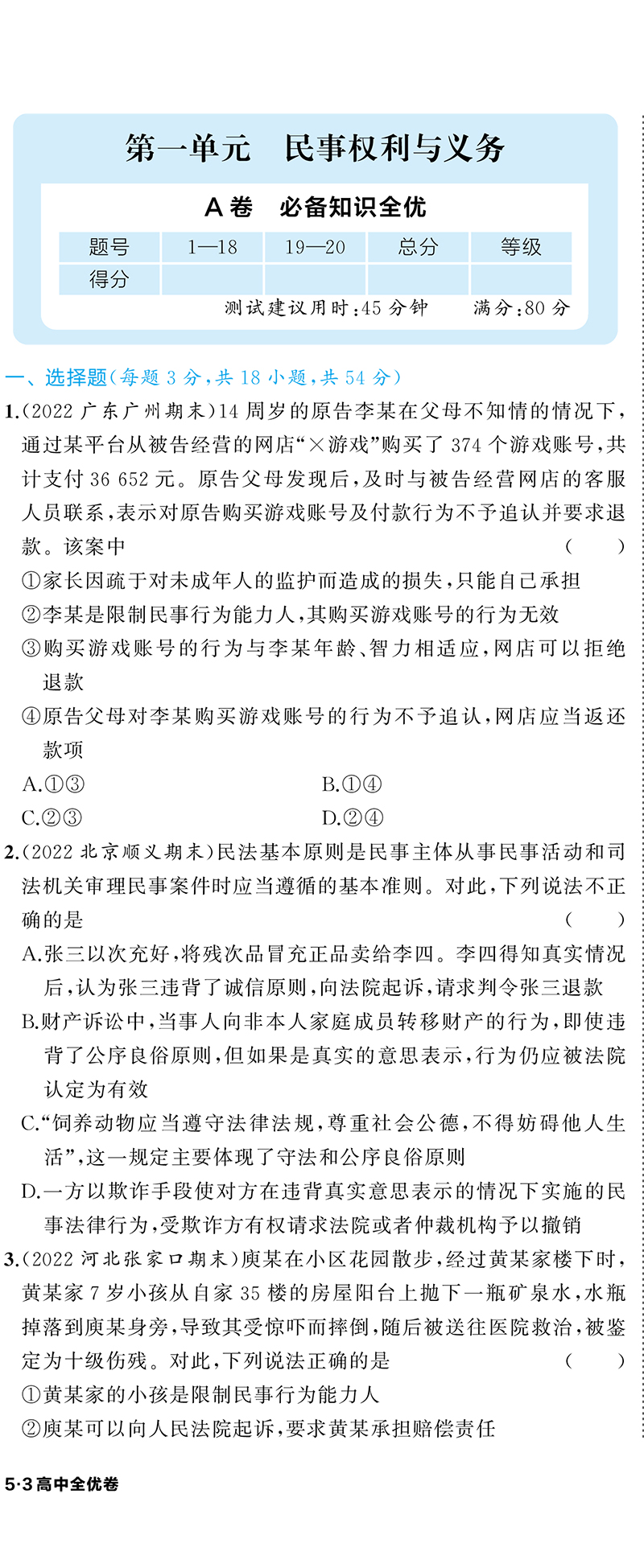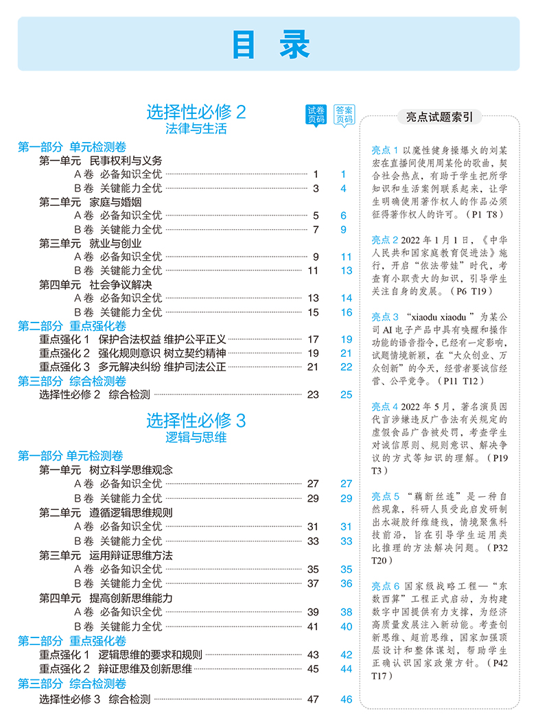 曲一线 2023版 5.3高中全优卷思想政治选择性必修2、3册 人教版
