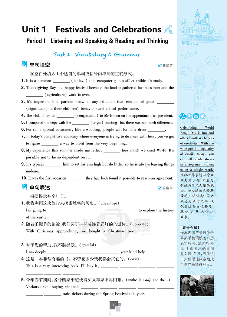 2023版 高中必刷题英语高一下必修第三册 人教版