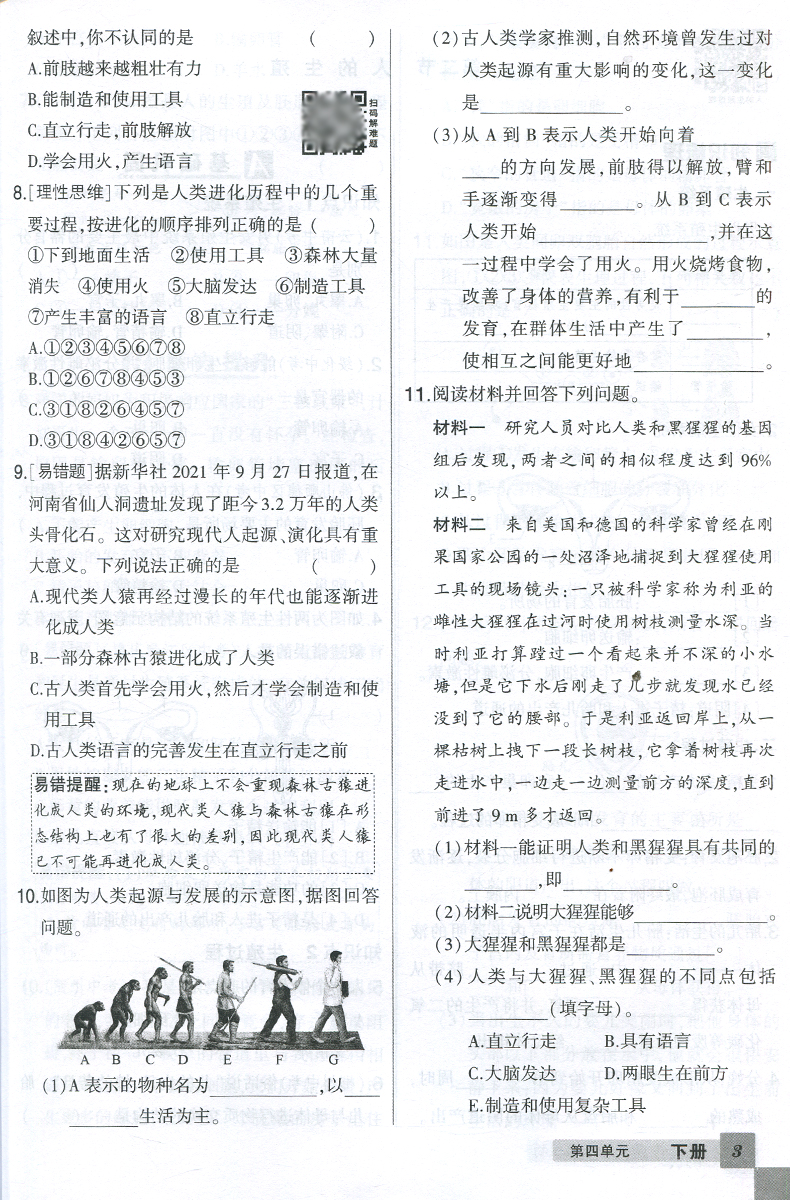 2023春 状元成才路创优作业 七年级下册生物 人教版