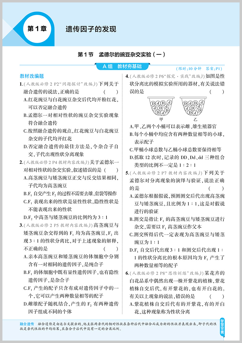 曲一线 53基础题 高一下 生物学 必修2 遗传与进化 人教版