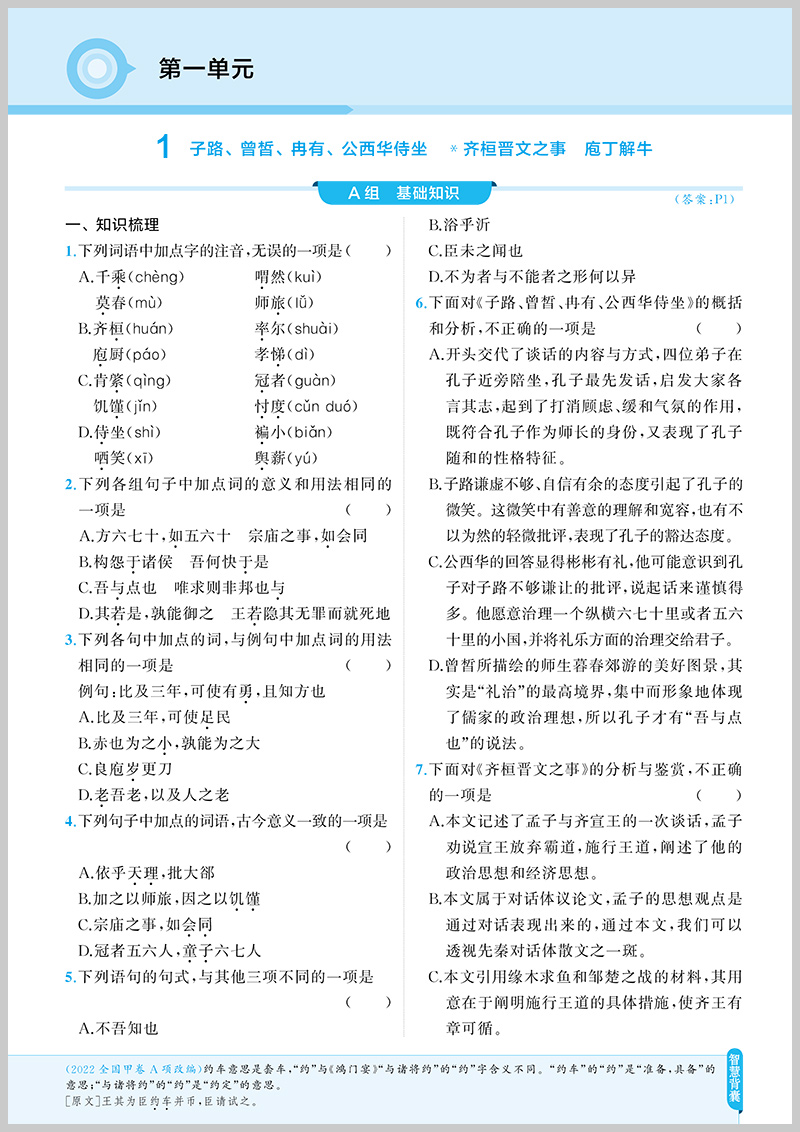 曲一线 53基础题 高一下 语文 必修下册 人教版