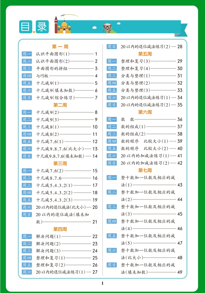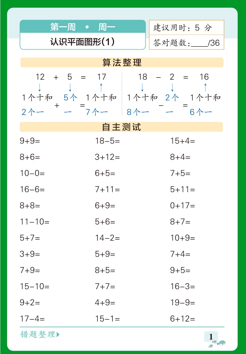 pass绿卡小学学霸天天计算一年级下册人教版
