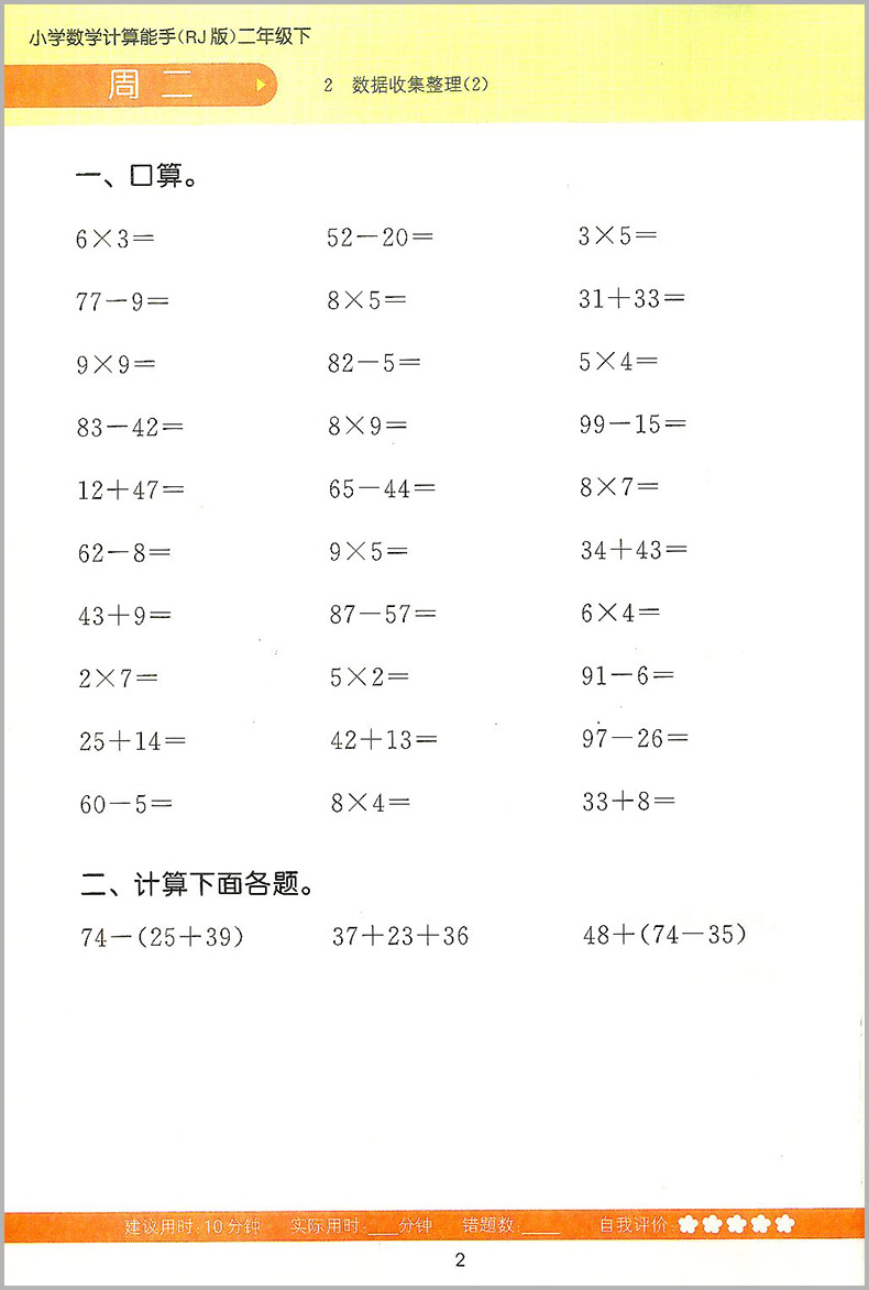 首页> 小学教辅> 二年级> 数学> 小学数学计算能手二年级下册数学人教版