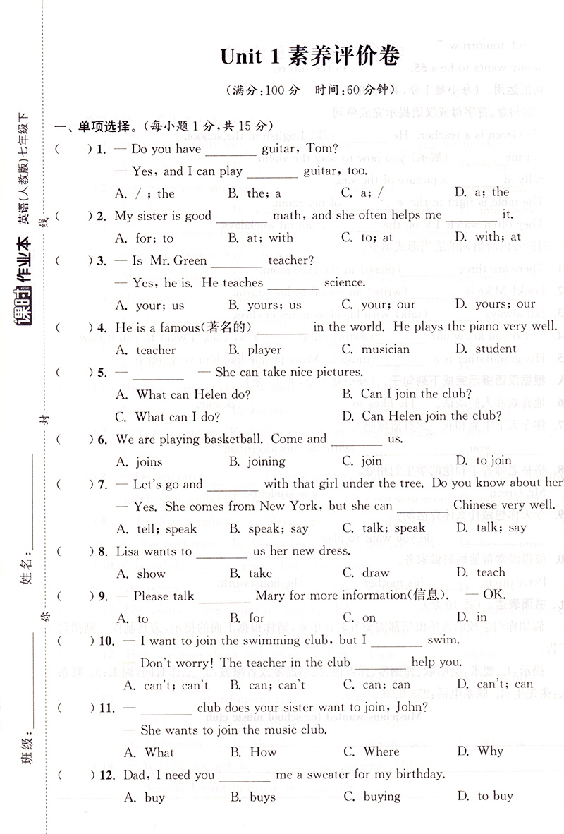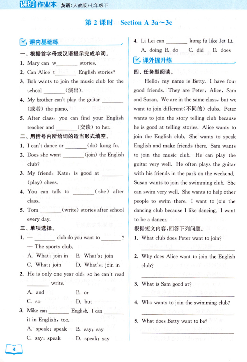 2023春 通成学典 课时作业本七年级英语下册 人教版