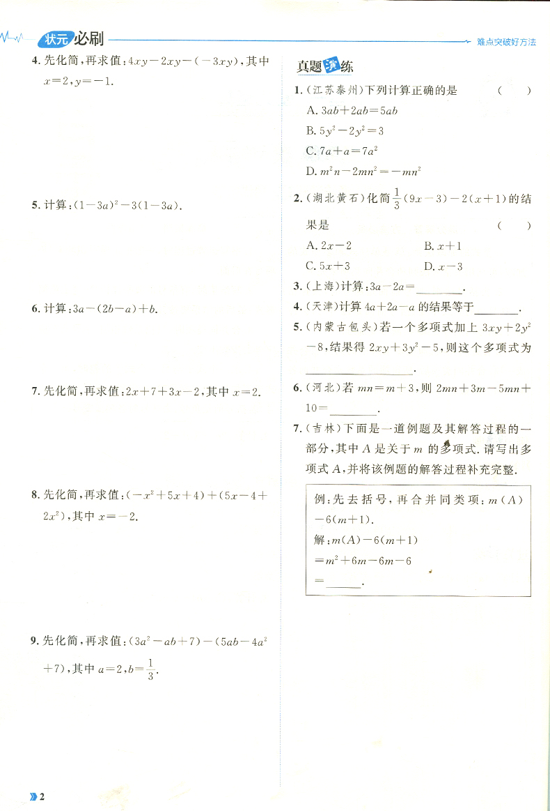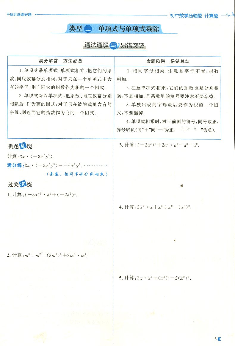 2023版 状元必刷初中数学压轴题计算题 专项训练新教材