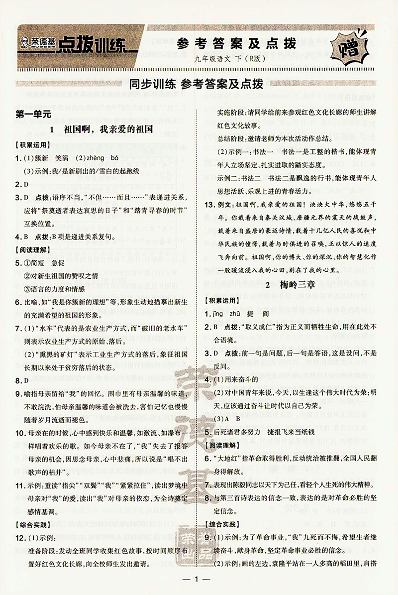 2023春 荣德基点拨训练 九年级语文下册 人教版