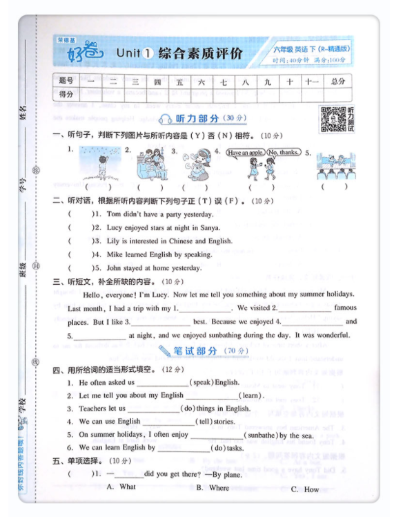首页> 小学教辅> 六年级> 英语> 荣德基好卷六年级下册英语人教精通版