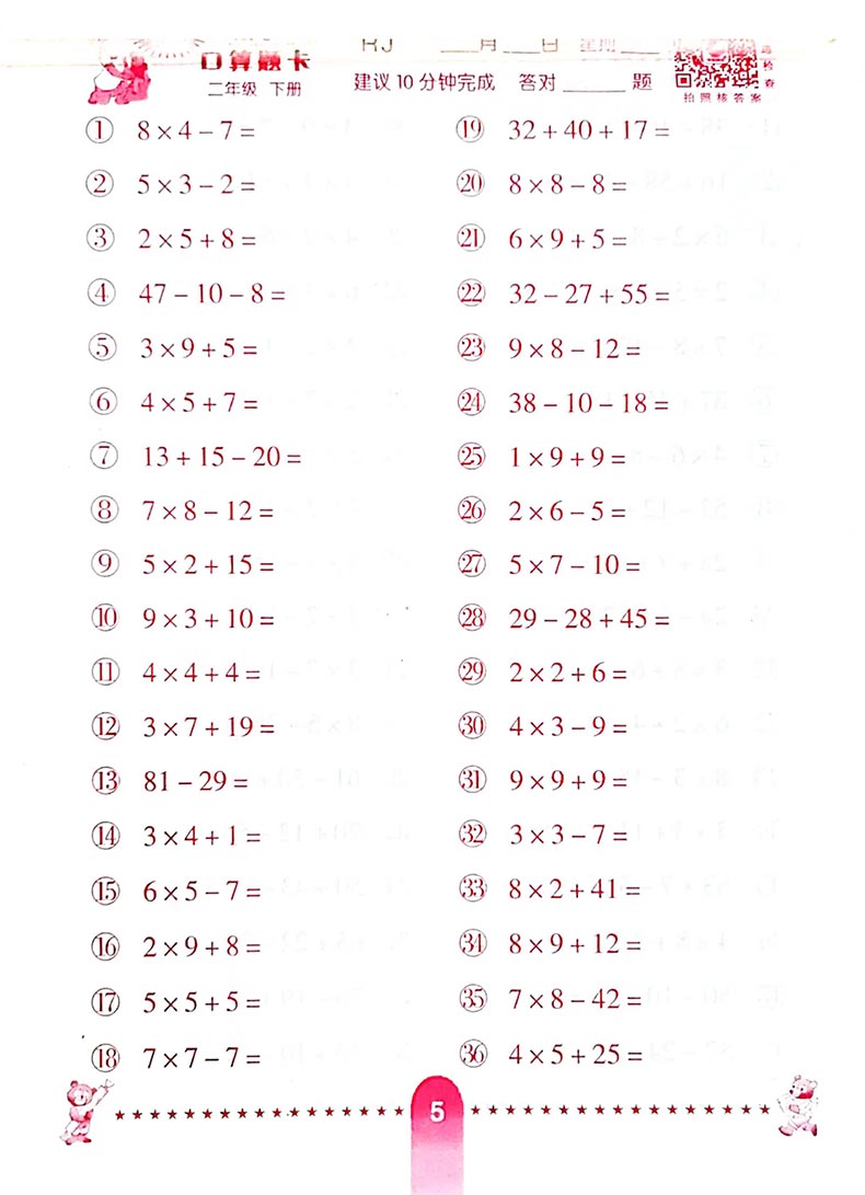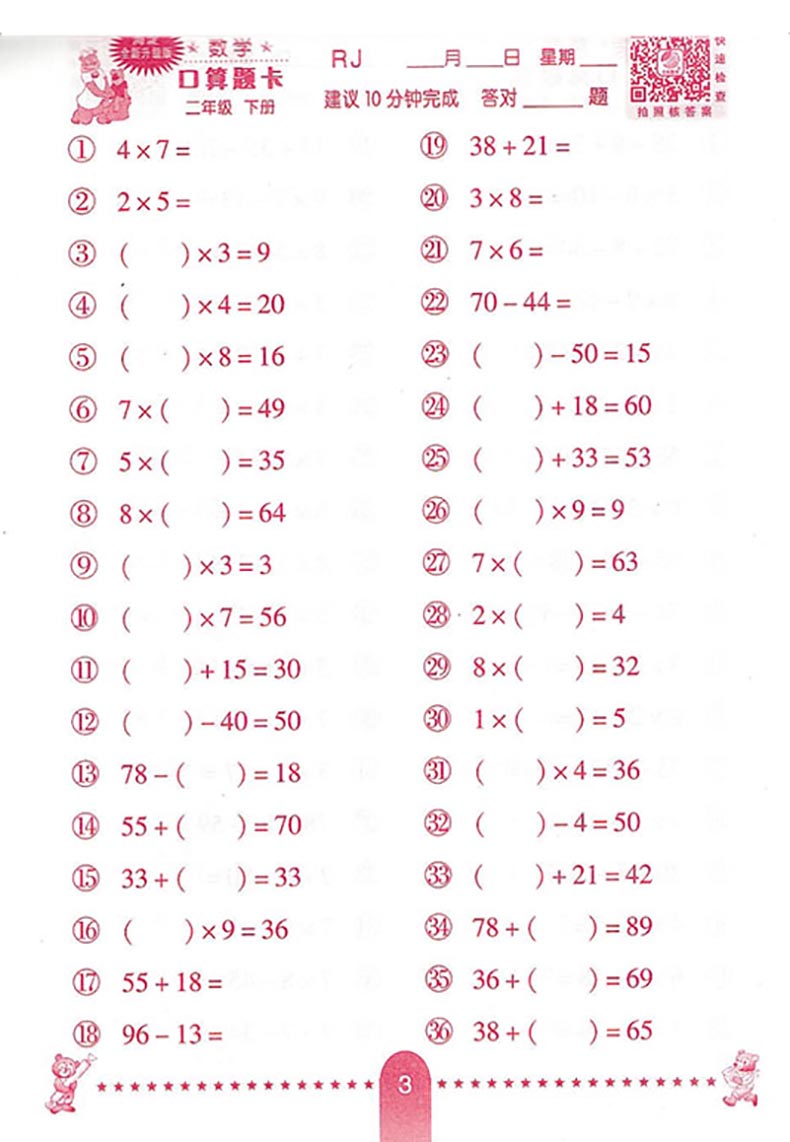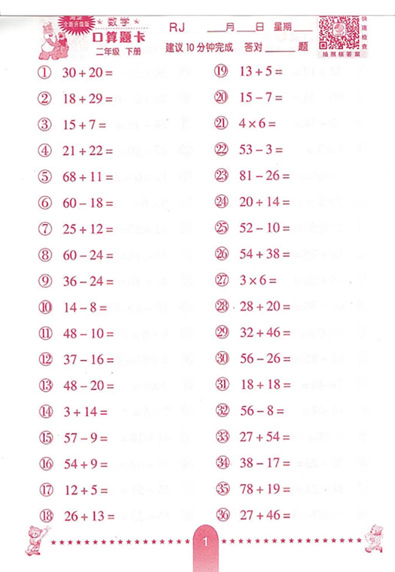 首页> 小学教辅> 二年级> 数学> 小学生数学口算题卡 二年级下册 人教版