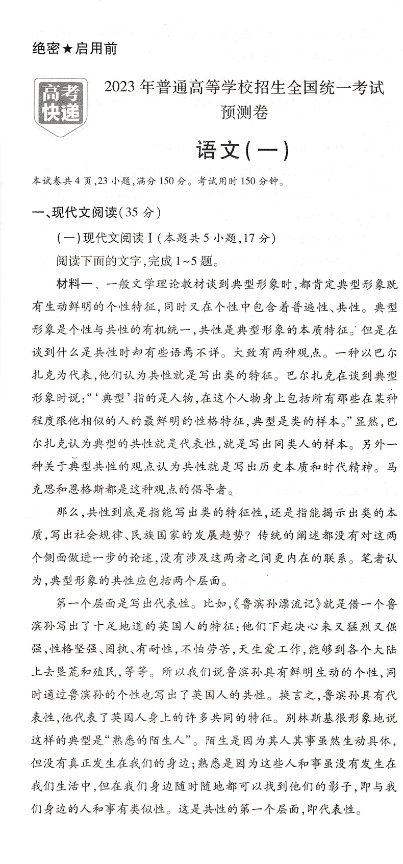 2023版 万向思维 高考预测卷 语文 新高考专用