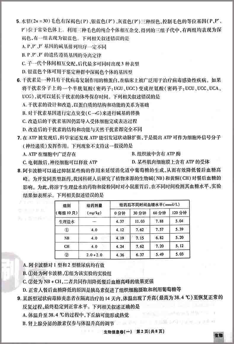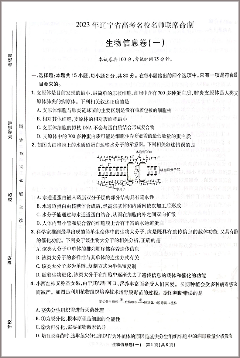 理想树2023版 高考必刷卷信息卷 生物选考(辽宁专用)