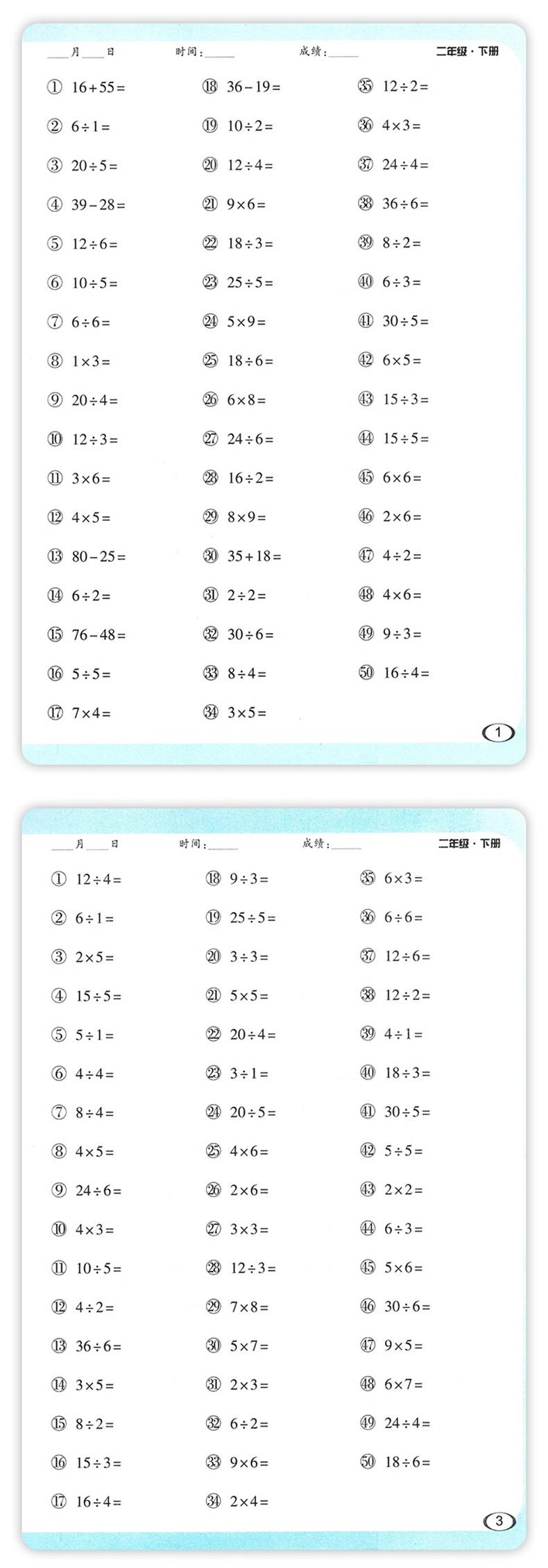 首页> 小学教辅> 二年级> 数学> 每天100道口算题卡 二年级下册