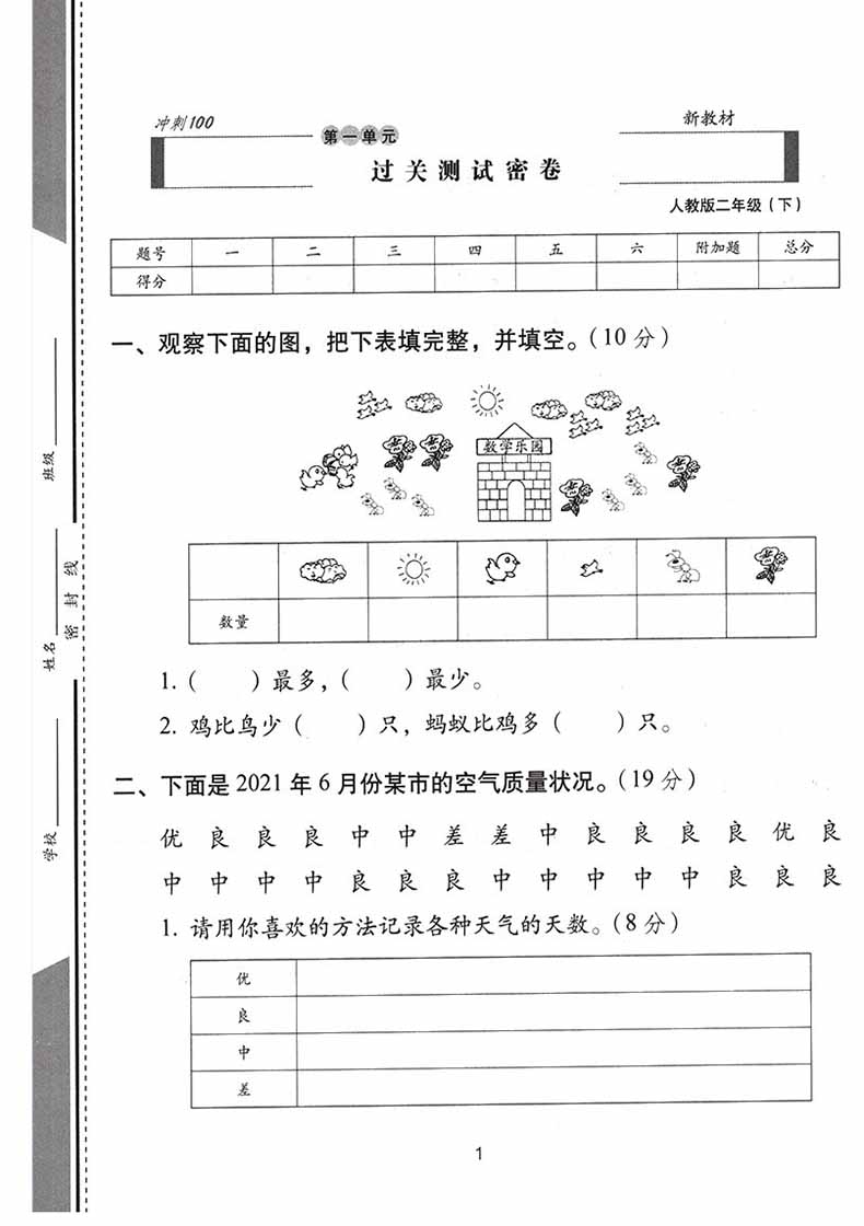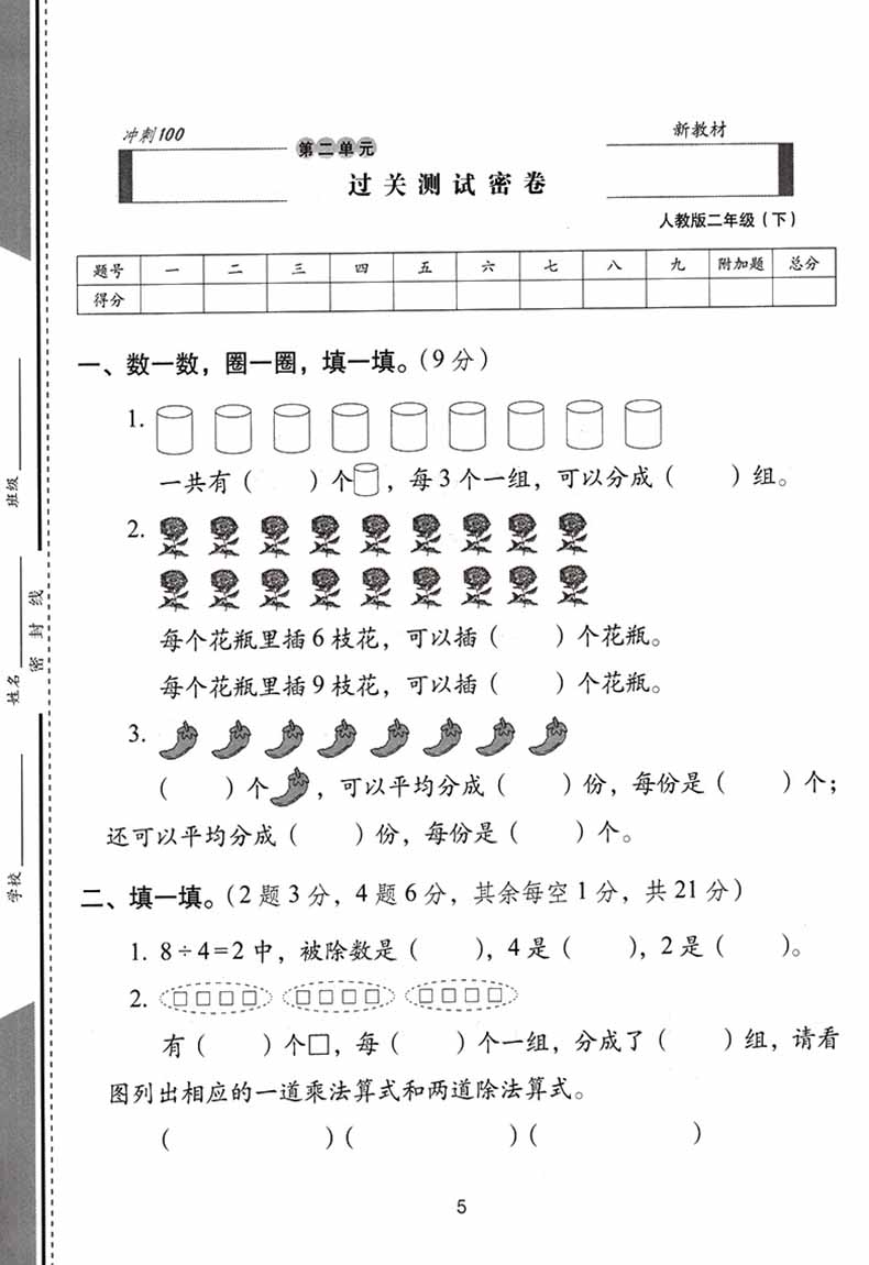 2023春 期末冲刺100分数学 二年级下册 人教版